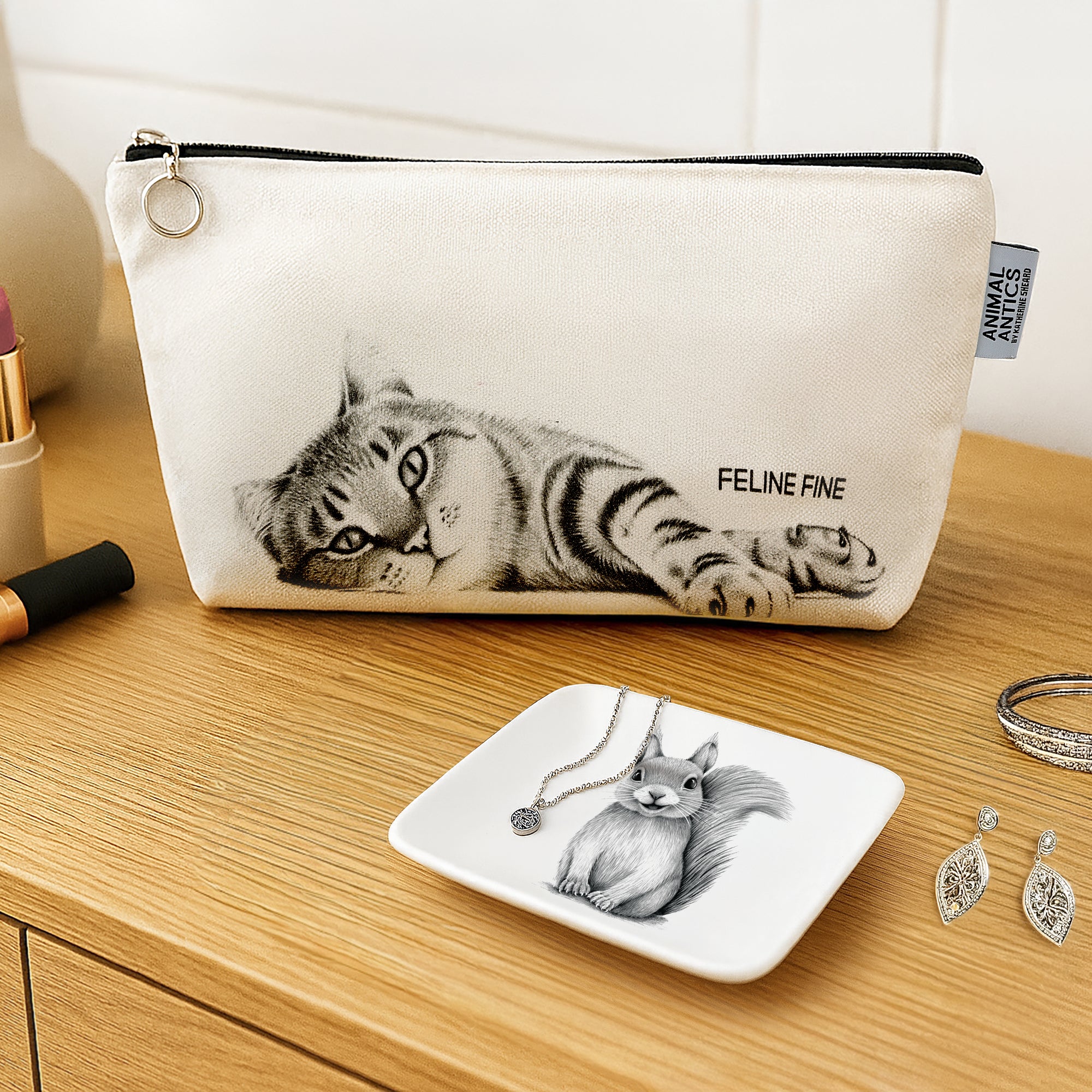 - IN-HOUSE DESIGN: Features a hand-drawn-style illustration of a bright-eyed squirrel perched upright with a fluffy tail curled over its back. Rendered in detailed pencil sketch tones, the artwork adds rustic woodland charm and playful personality to the dish’s clean white base.