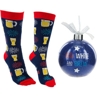 Red, White and Brew 4" Ornament with Unisex Holiday Socks