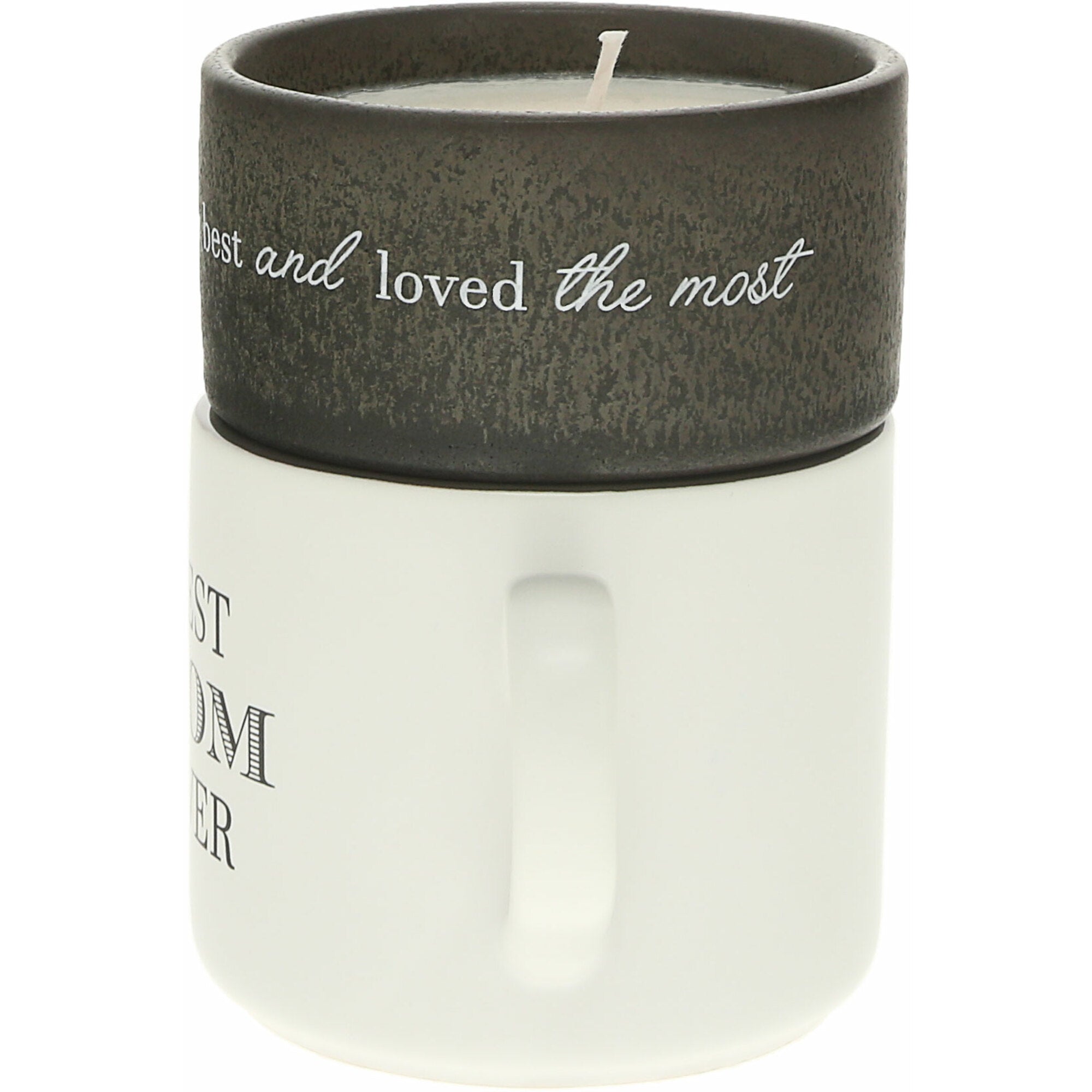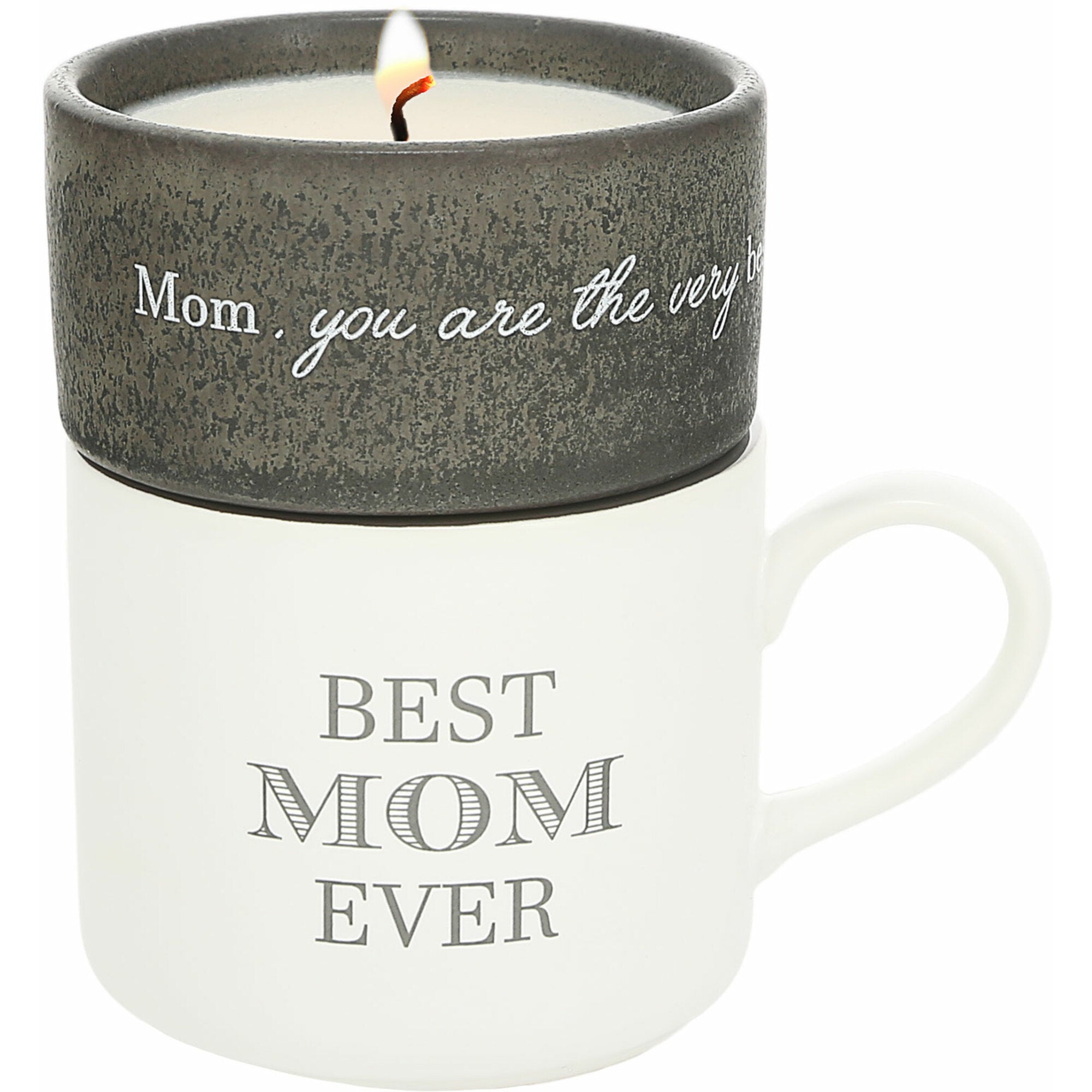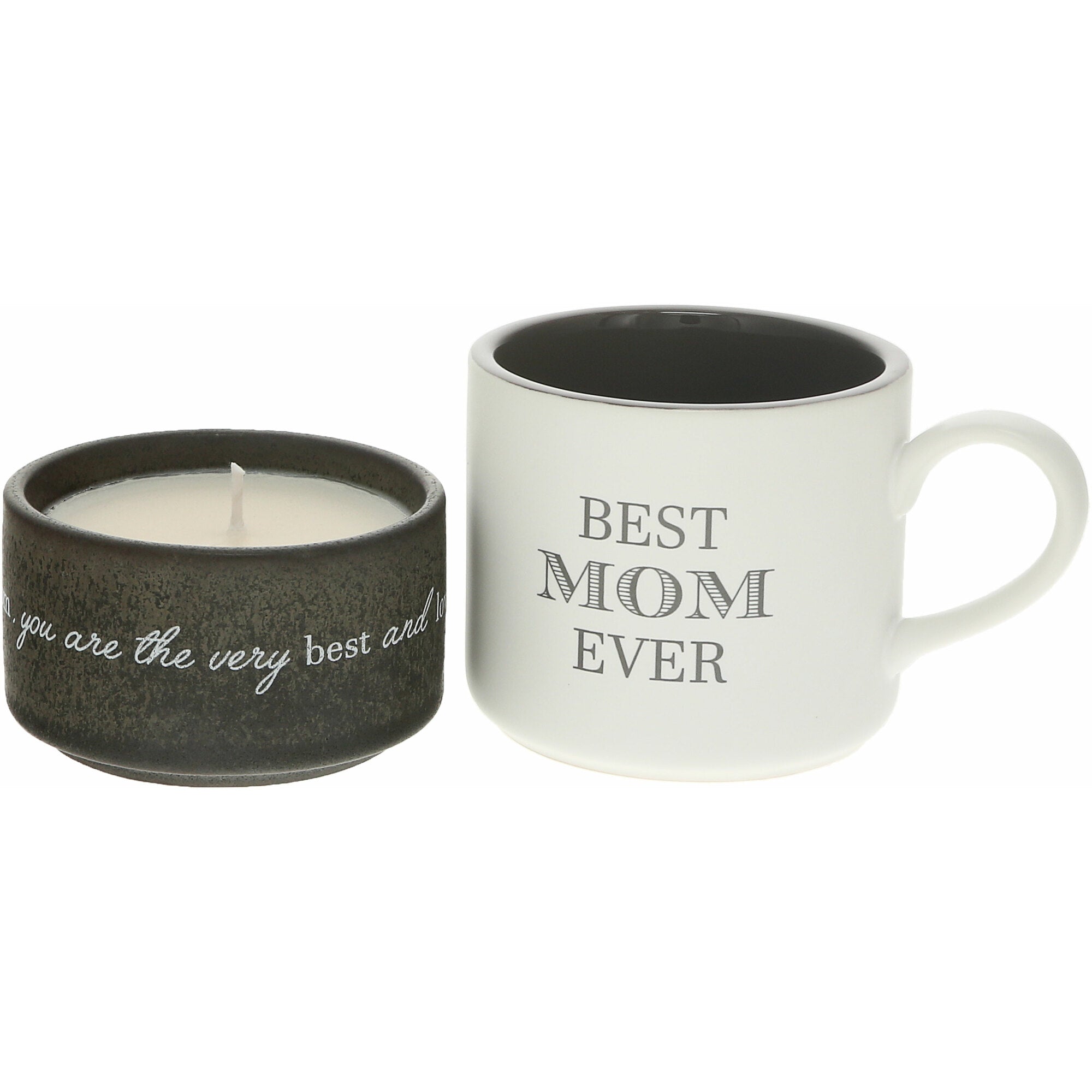 - IN-HOUSE DESIGN: Wrap-around white sentiment on the candle, "Mom, You Are The Very Best And Loved The Most." Gray mug sentiment "Best Mom Ever" on the front side of the mug only. Faces towards you in the right hand or outward in the left hand.