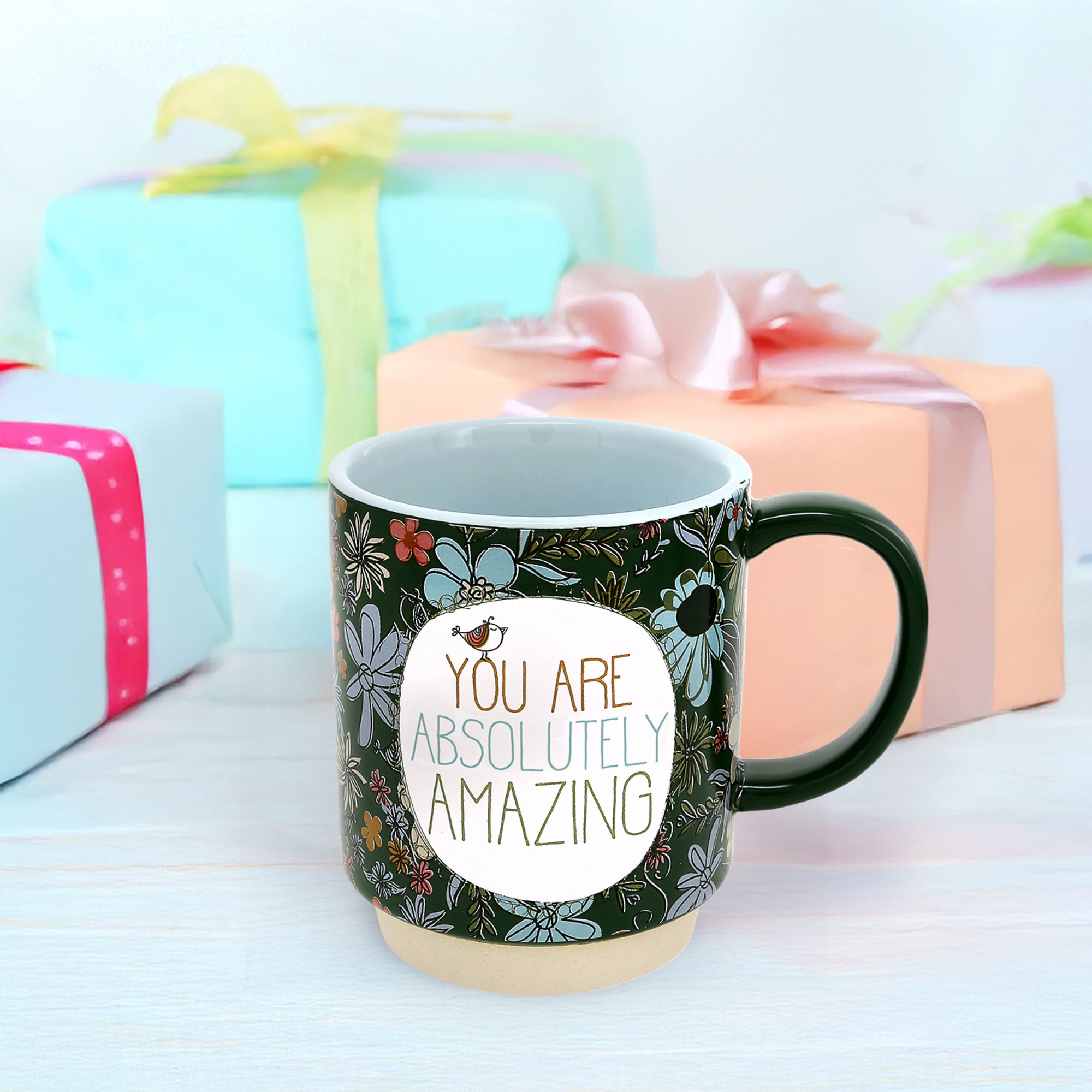 - IN-HOUSE DESIGN: Adorned with a floral motif and soft, earthy tones, this mug features the uplifting sentiment: "You are absolutely amazing." The delicate design and inspiring message make this mug a daily reminder of self-worth and positivity. The contrast between the matte exterior and glossy interior enhances its sophisticated look.