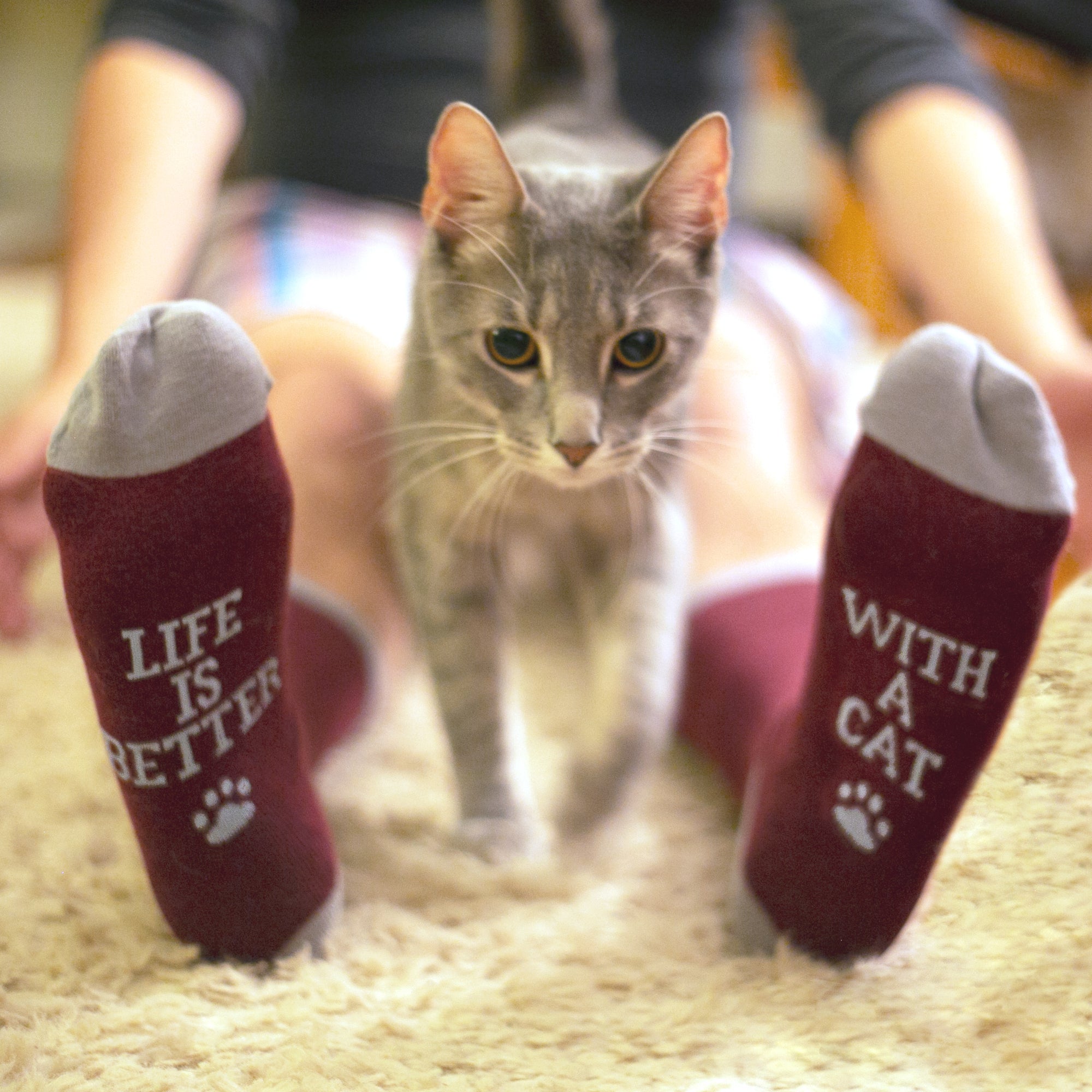 - IN-HOUSE DESIGN: "Life Is Better With A Cat" text is sewn into the base of the socks, as is the Cat People logo and text on the ankle.