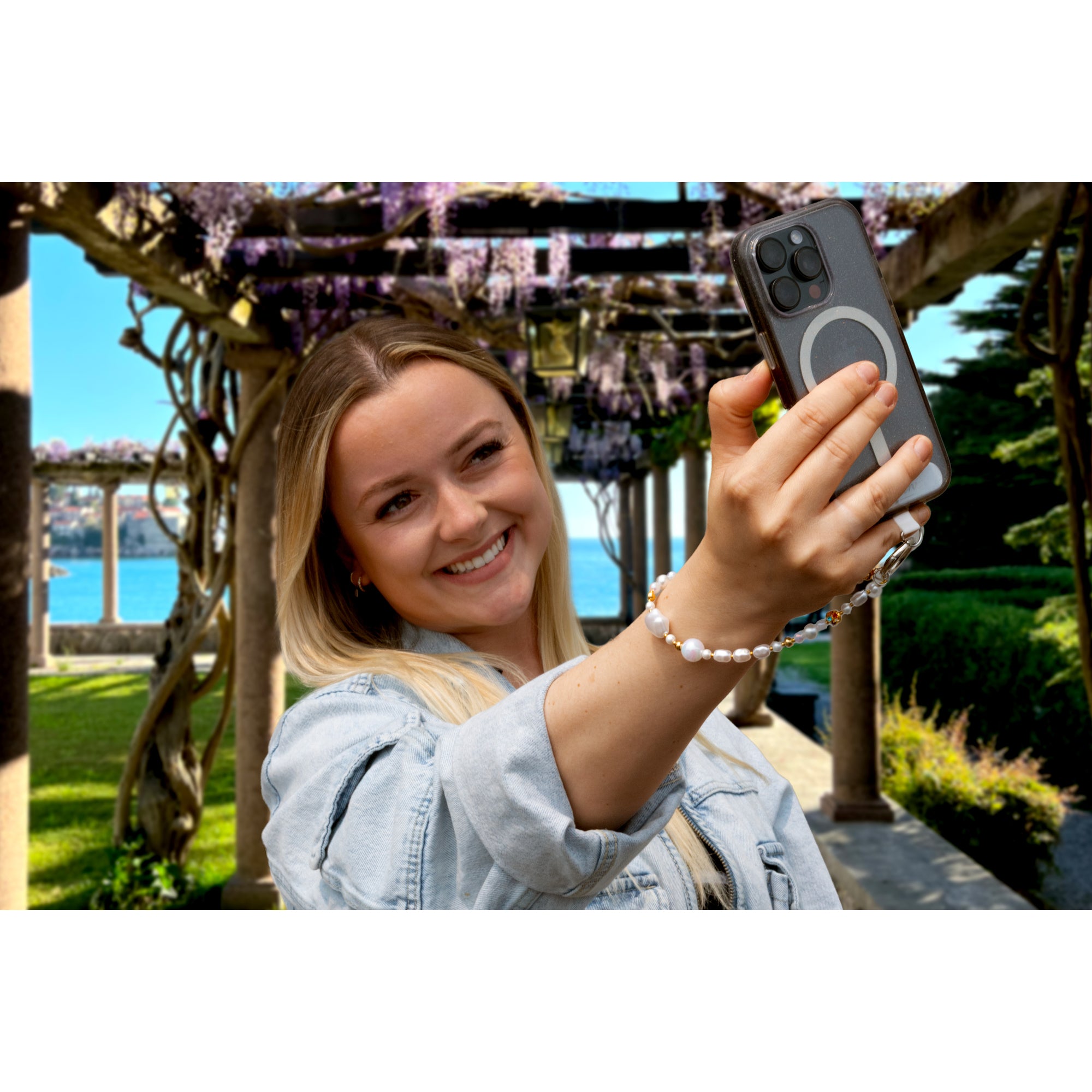• PREMIUM QUALITY: This hands-free wrist strap is made from a high-strength elastic core and adorned with elegant, iridescent beading that gives it both durability and style. The construction allows for gentle stretch and flexibility without sacrificing reliability. The sturdy metal clasp is easy to clip onto the included clear acrylic phone tab, which slides securely between your phone and case without causing damage. Built to offer function and flair, this strap is ideal for daily use, travel, errands, and more.