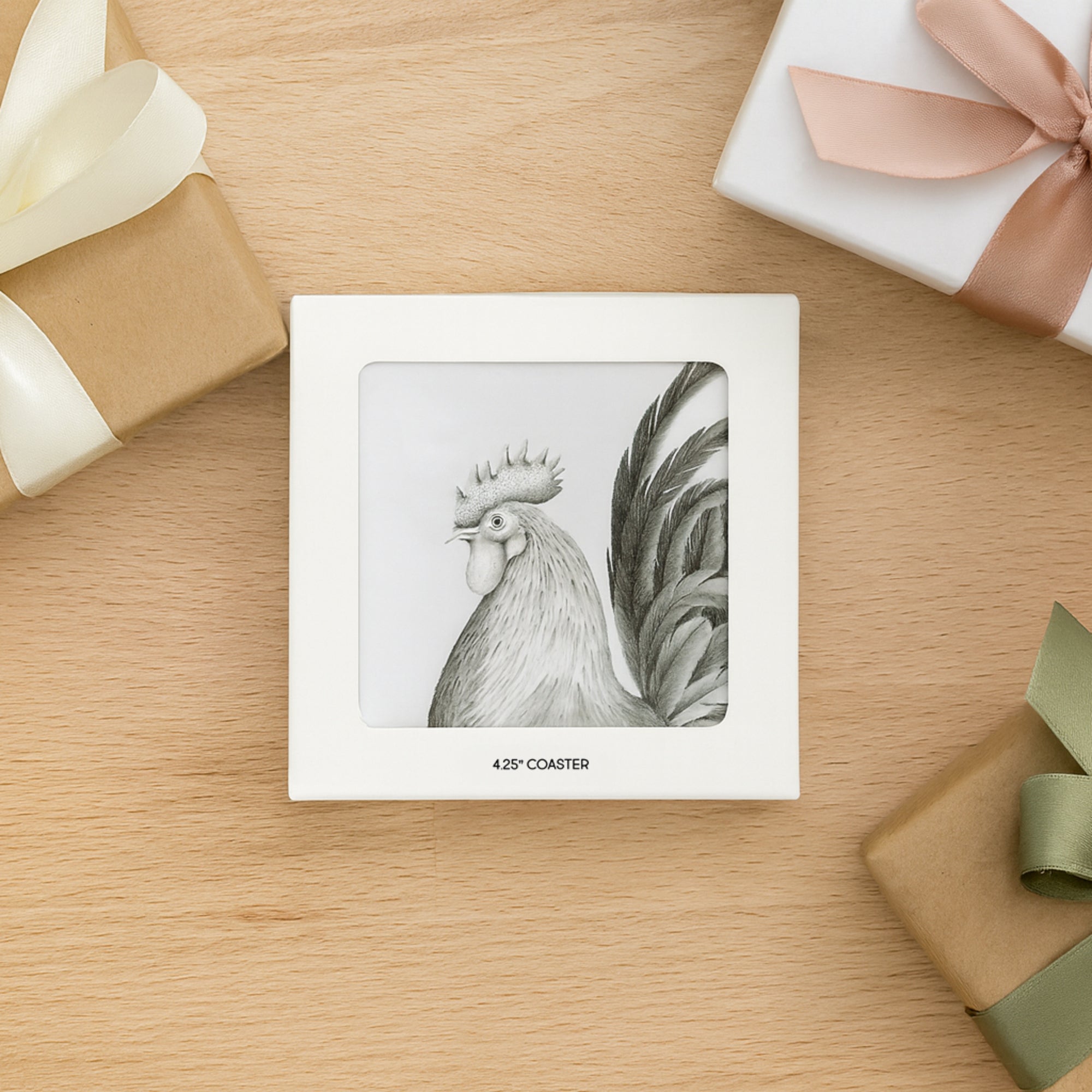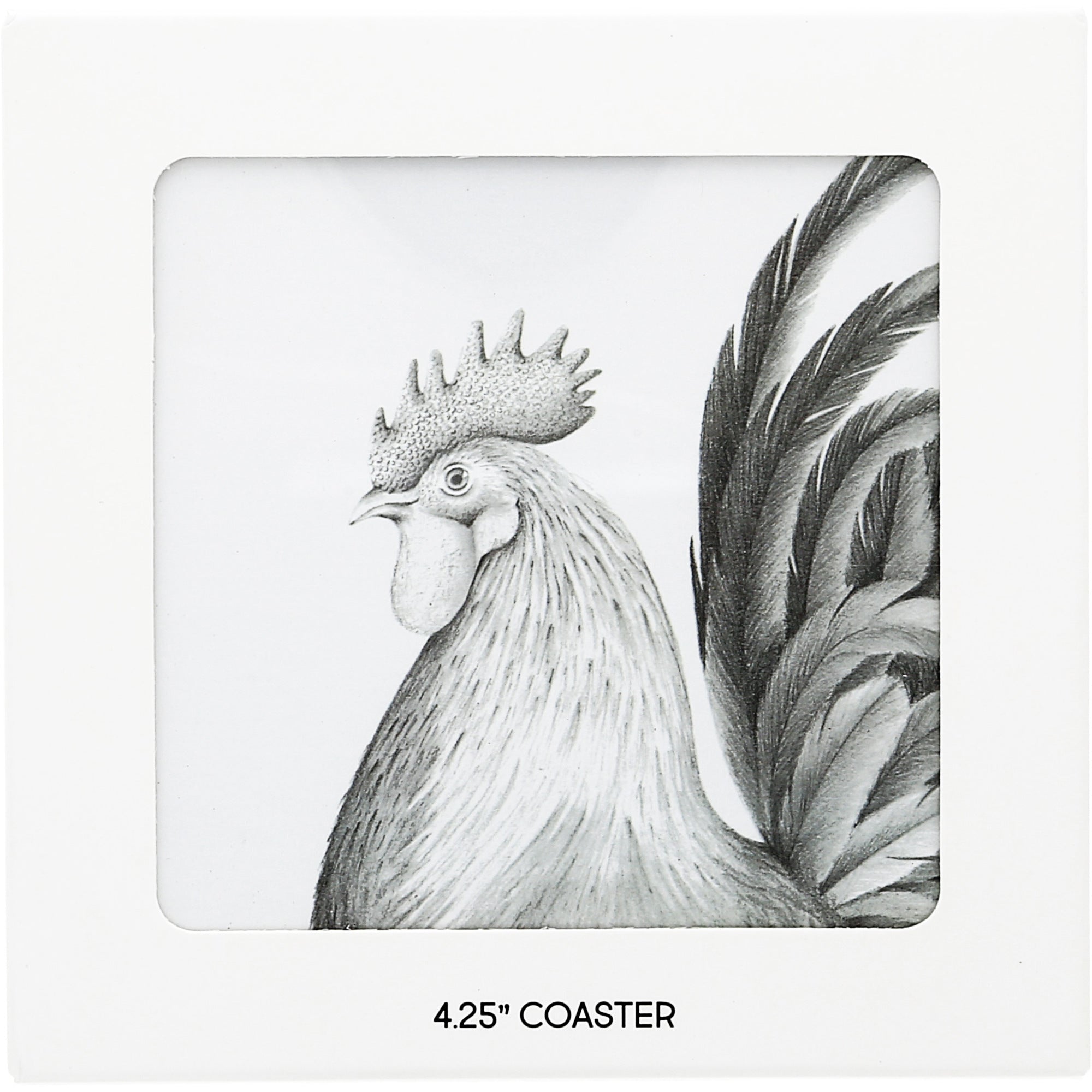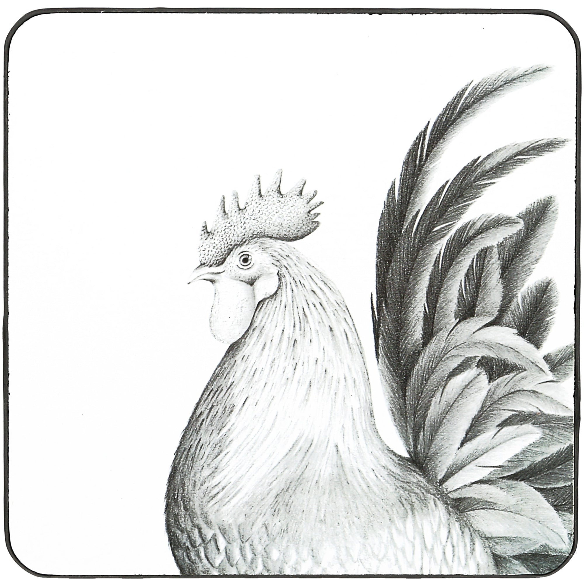 - IN-HOUSE DESIGN: The bold black-and-white illustration of a proud rooster is drawn in a classic graphite pencil sketch style by Katherine Sheard. With fluffed feathers, a majestic tail, and intense gaze, this farm-fresh design stands tall on any surface.