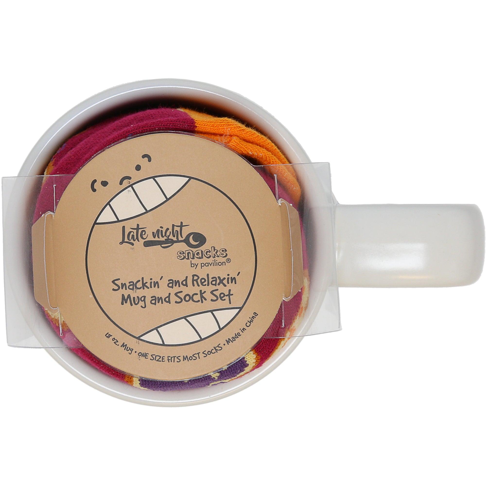 - PREMIUM QUALITY: The 18 oz mug is made from white glossy stoneware and includes one pair of matching socks made from a cotton, polyester, and Spandex blend that fits shoe size: Women's US 9-13 // EURO 39-43 Men's US 8-12 // EURO 41-45.