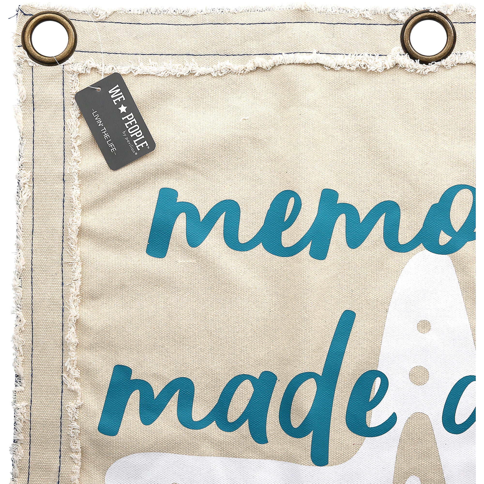 - IN-HOUSE DESIGN: "Memories Made At The Beach Last A Lifetime" blue & teal text sentiment on top of the white starfish decal is only printed on the front. This banner was created by our design team to complement other home decor items inside of a beach house where the best memories are made on the boat, toes in the sand, a drink in your hand, swimming in the sea/ocean water on a hot sunny summer day.