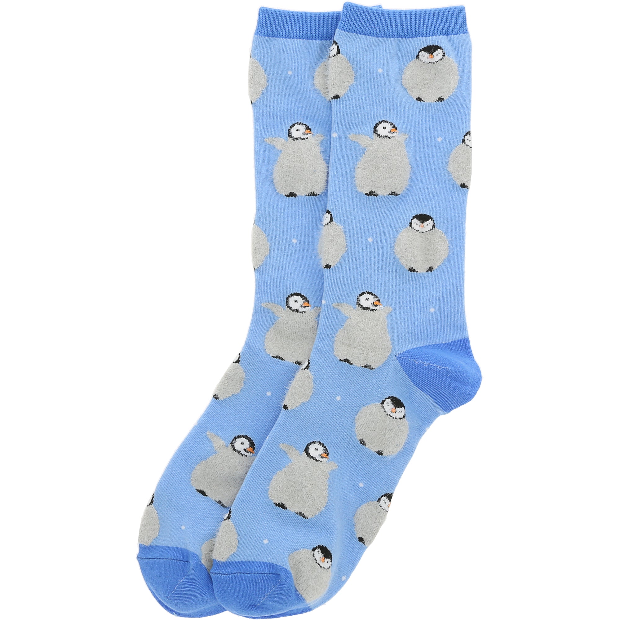 - IN-HOUSE DESIGN: Decorated with a repeating pattern of gray and black baby penguins on a soft blue background, these socks evoke arctic cuteness at its best. The darker blue toe and heel add contrast and visual interest while reinforcing wear areas.