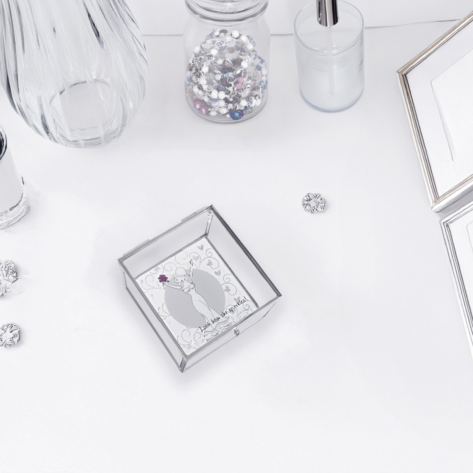 - PREMIUM QUALITY: Crafted from clear glass and durable steel, this 4" keepsake box ensures both strength and elegance. Packaged in a plain yet protective box, the design speaks to minimalism while letting the product shine. The sturdy steel frame reinforces the delicate glass, allowing it to store jewelry, trinkets, or mementos safely and stylishly. The quality materials make this piece a timeless keepsake to treasure for years.