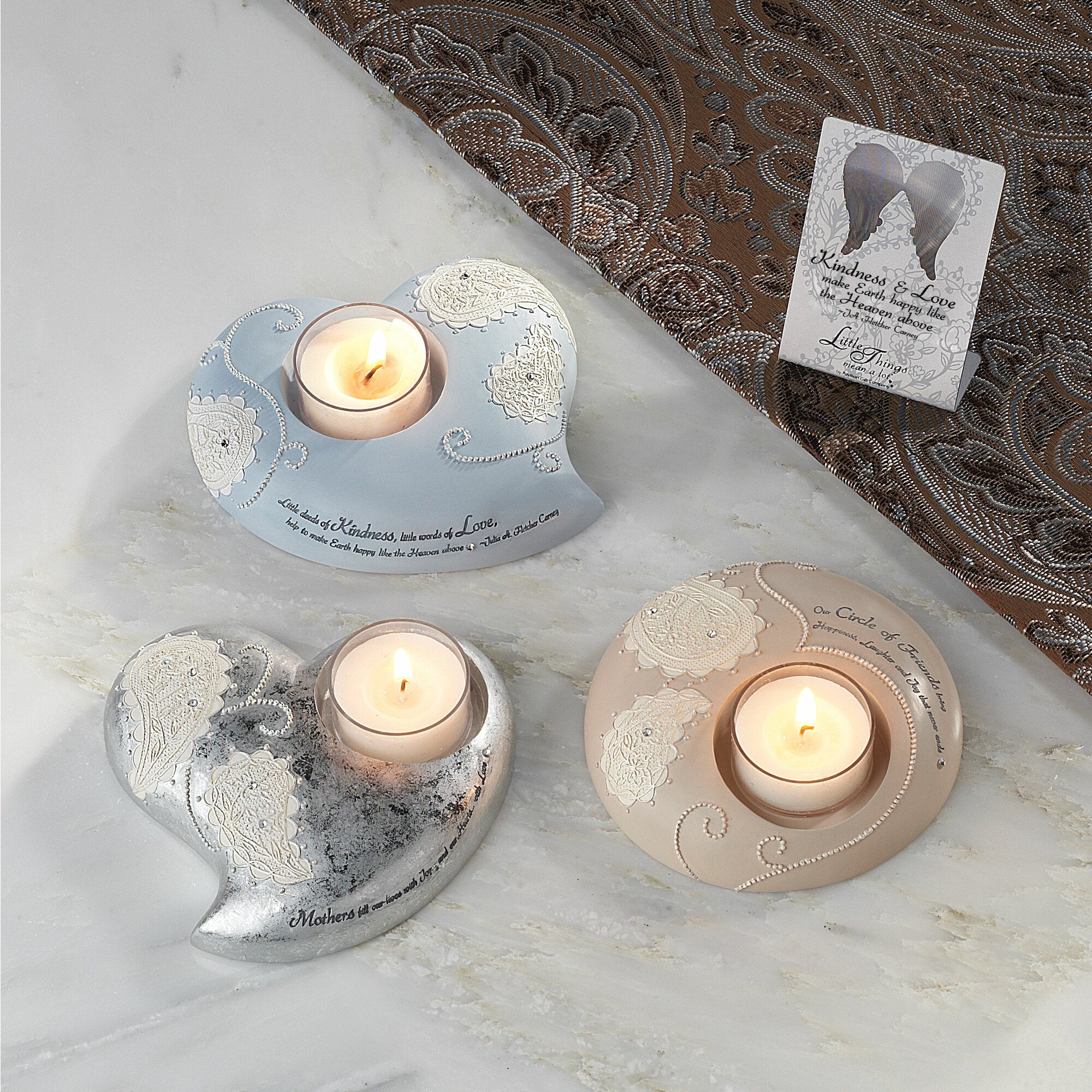 - PREMIUM QUALITY: Candle holder, packaged in a printed box, is made from polyresin and fits one regular tealight candle (not included).