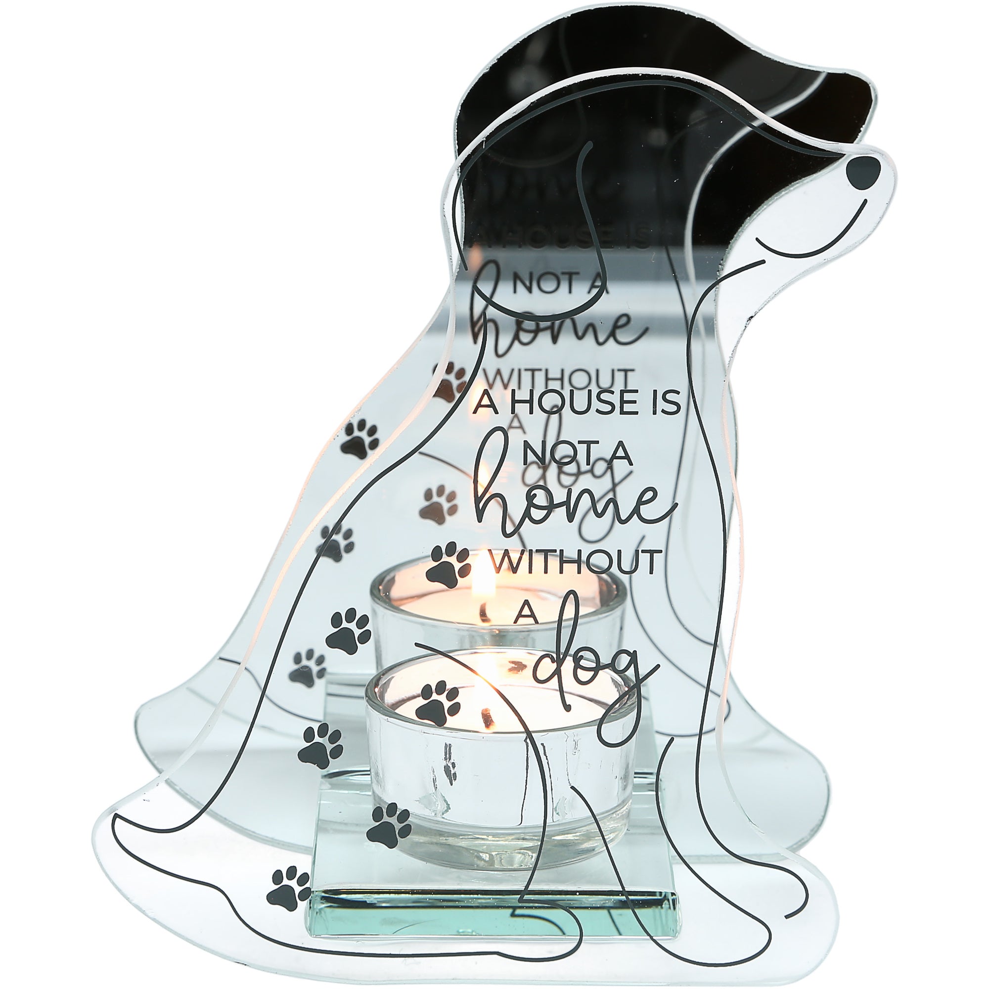 - IN-HOUSE DESIGN: "A House Is Not A Home Without A Dog" is printed in dark gray and accompanied by a puppy paw, tail, ear & nose silhouetted line, and paw print design on the front glass piece.