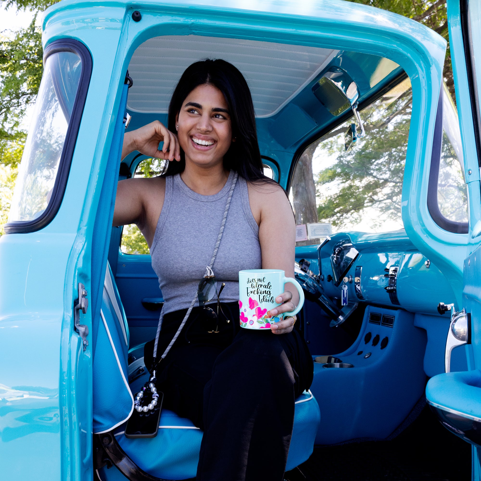 - IN-HOUSE DESIGN: The mug features a bold floral pattern surrounding the cheeky sentiment, "Does not tolerate f*cking idiots." The contrast between the colorful flowers and the humorous phrase offers a delightful mix of sass and whimsy, making it a standout piece in any collection. The vibrant colors and raised hand-painted details elevate the design, adding a touch of charm and humor to your daily routine.