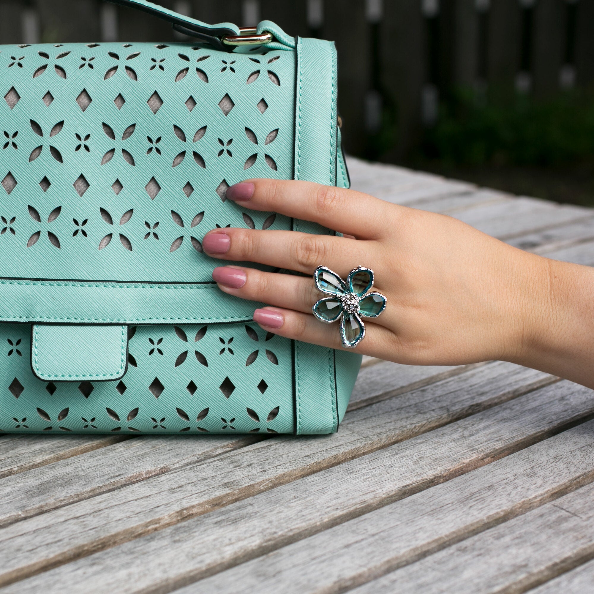 • IN-HOUSE DESIGN: Features a large flower-shaped detail.