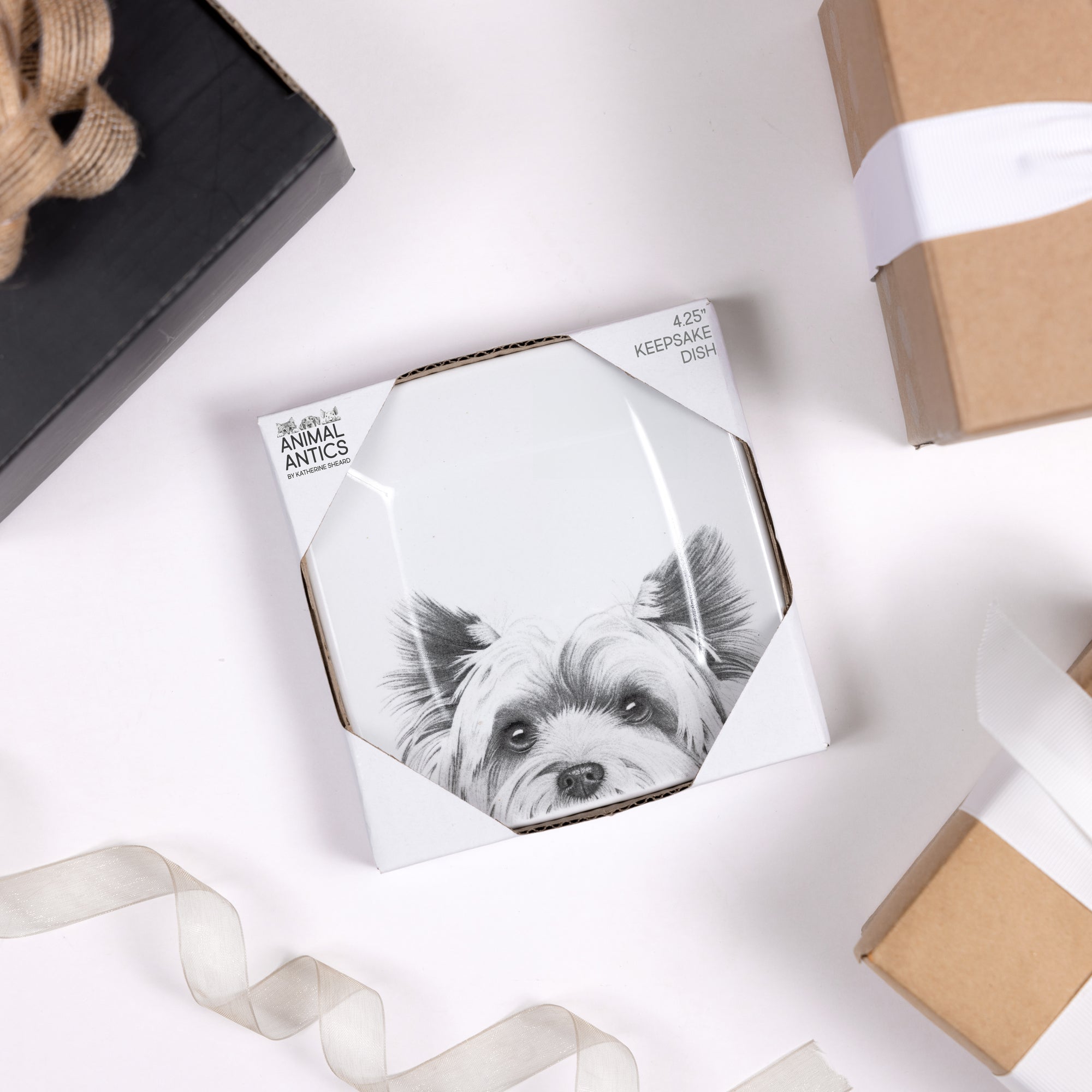 - IN-HOUSE DESIGN: This keepsake dish features a beautifully detailed dog illustration by Katherine Sheard, capturing the playful and loving essence of our furry friends. The design showcases raised dots and a glossy finish, adding texture and visual appeal to the artwork. The combination of intricate details and playful style makes this dish a perfect decorative piece for dog lovers, blending seamlessly into a variety of home decor themes.