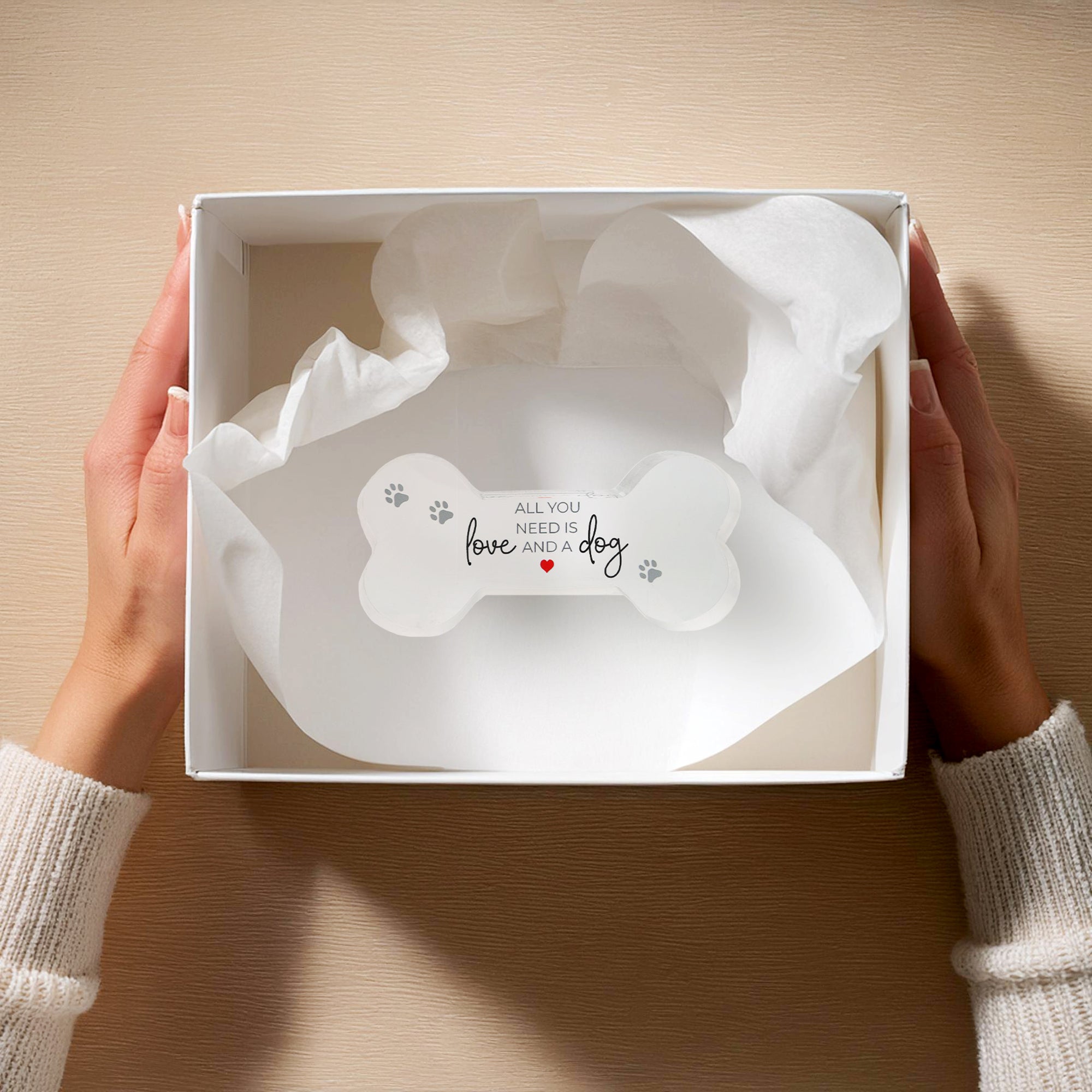 - IN-HOUSE DESIGN: Features a playful yet meaningful layout in soft gray and black text with the quote, “All you need is love and a dog.” The script font and lowercase styling add warmth and charm, while the tiny red heart and trailing paw prints subtly highlight the joy dogs bring. The bone silhouette makes it especially suited for canine-themed décor.