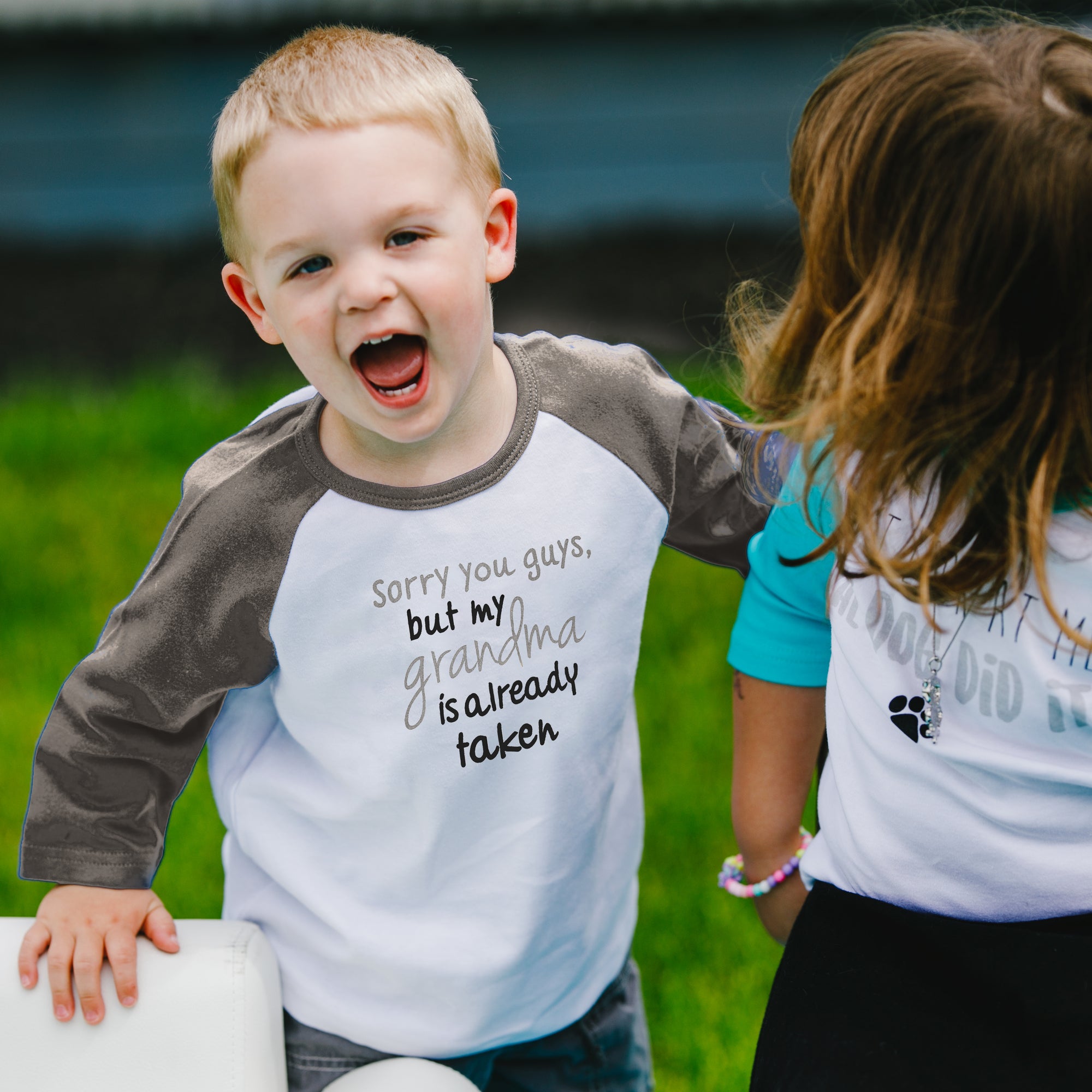 - IN-HOUSE DESIGN: "Sorry you guys, but my grandma is already taken" is screen printed on the front of the shirt. Comes packed in a plastic polybag on a white plastic hanger with an attached hangtag.