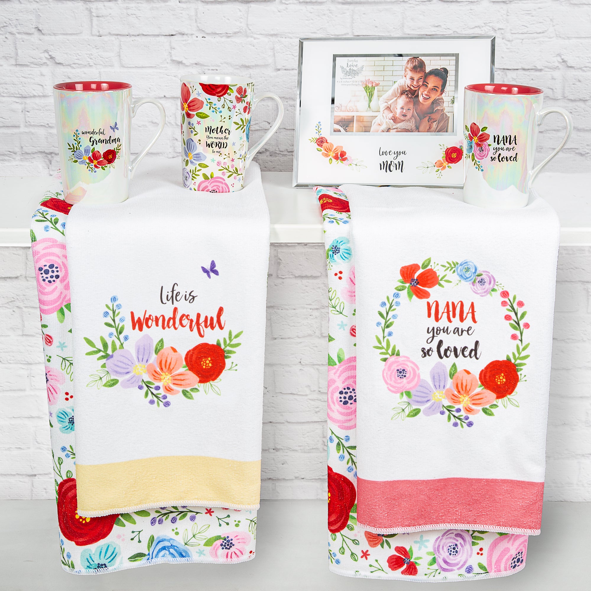 • IN-HOUSE DESIGN: "Nana You Are So Loved" text and floral design is printed onto the front of the tea towels.