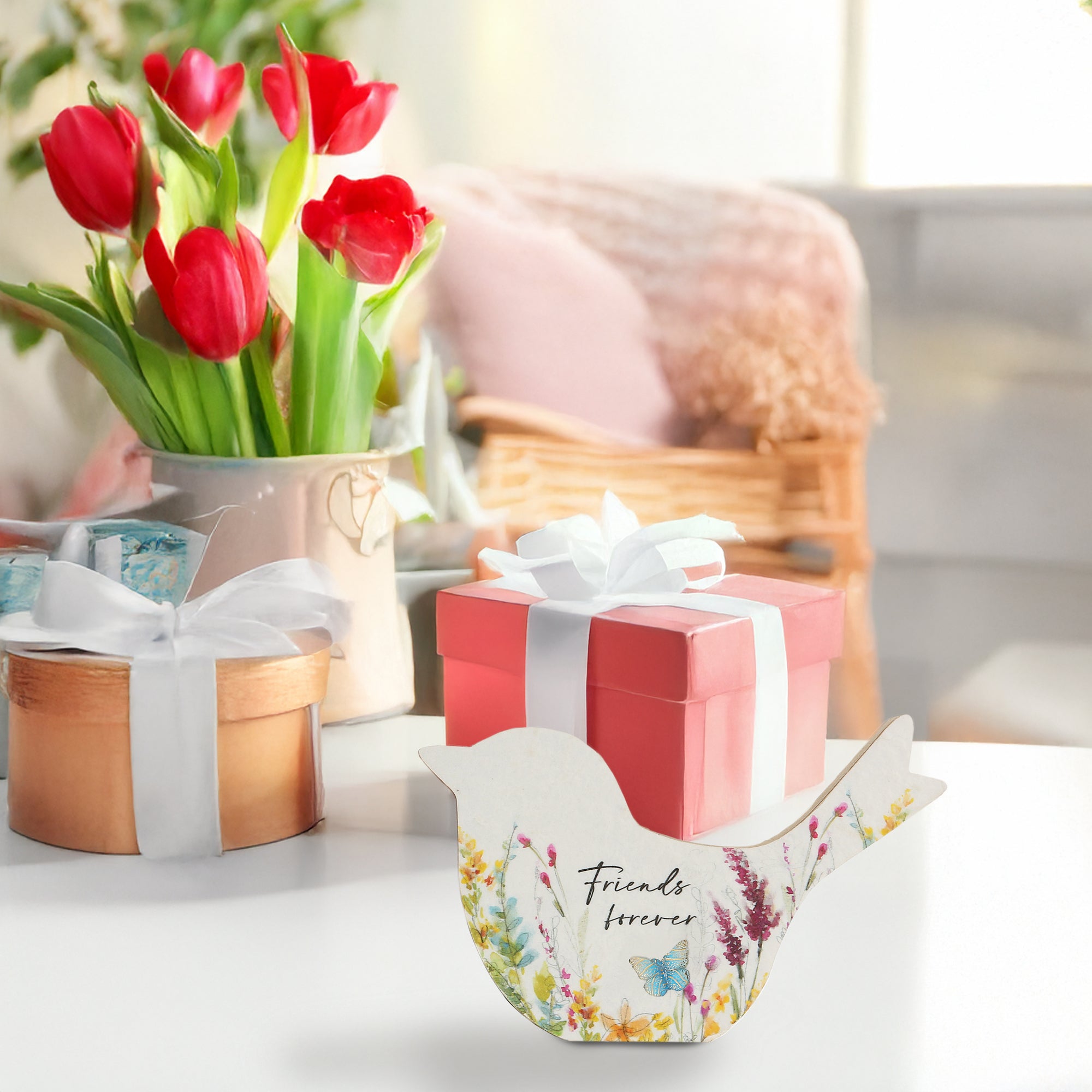 - IN-HOUSE DESIGN: Decorated with vibrant floral artwork and pastel tones, this plaque features screen-printed "Friends Forever" text surrounded by detailed butterflies and botanical elements. Its gentle hues and nature-inspired design bring warmth and beauty to any space.