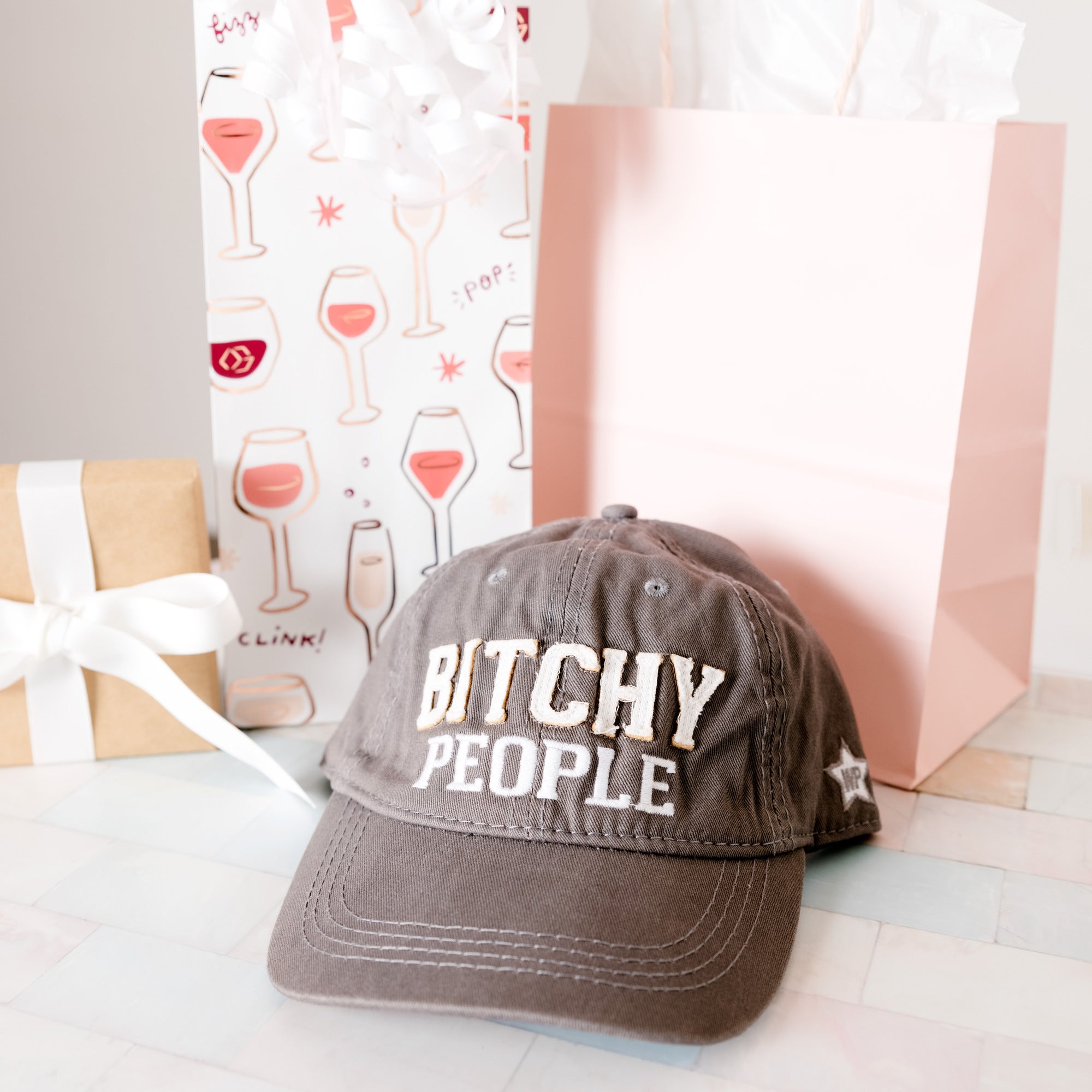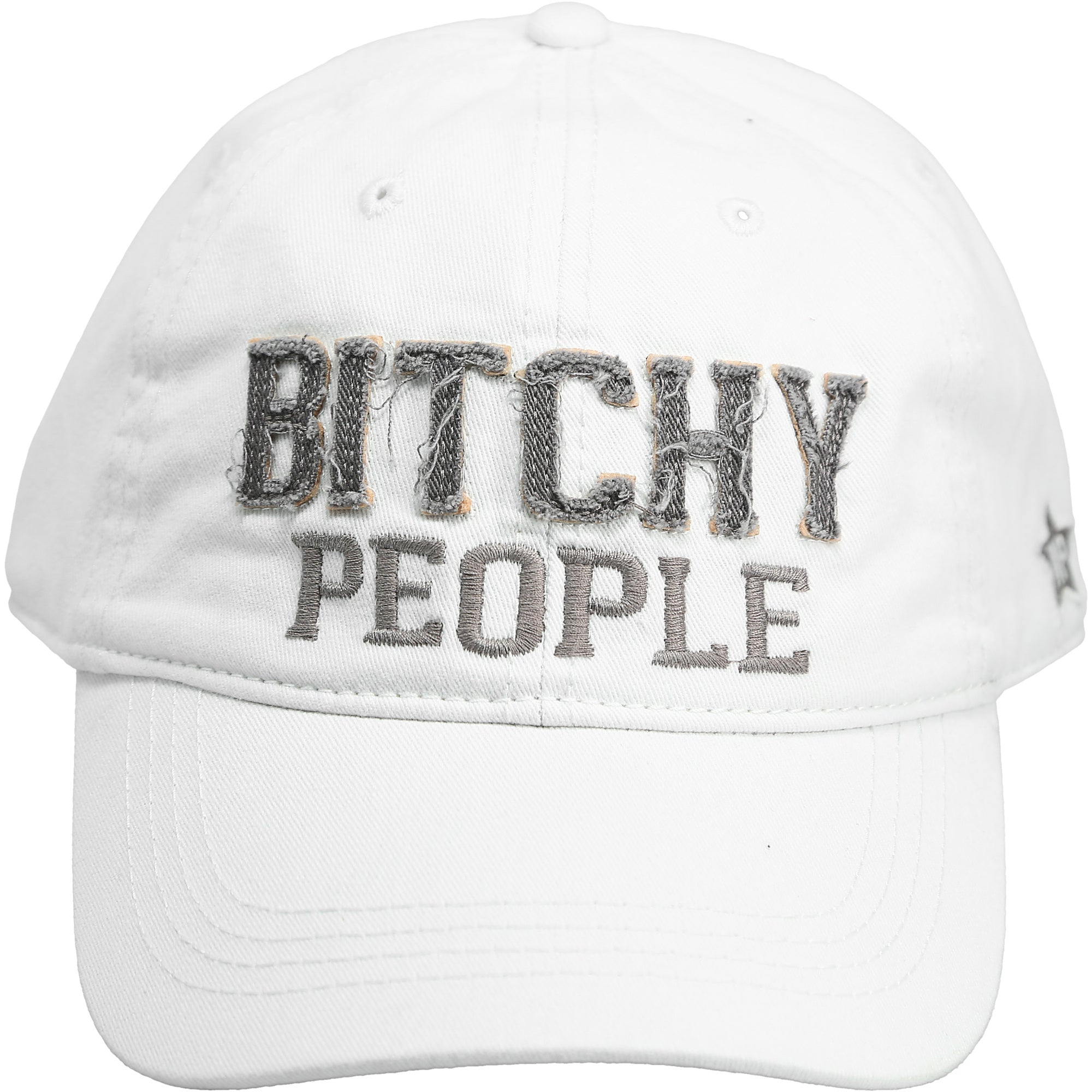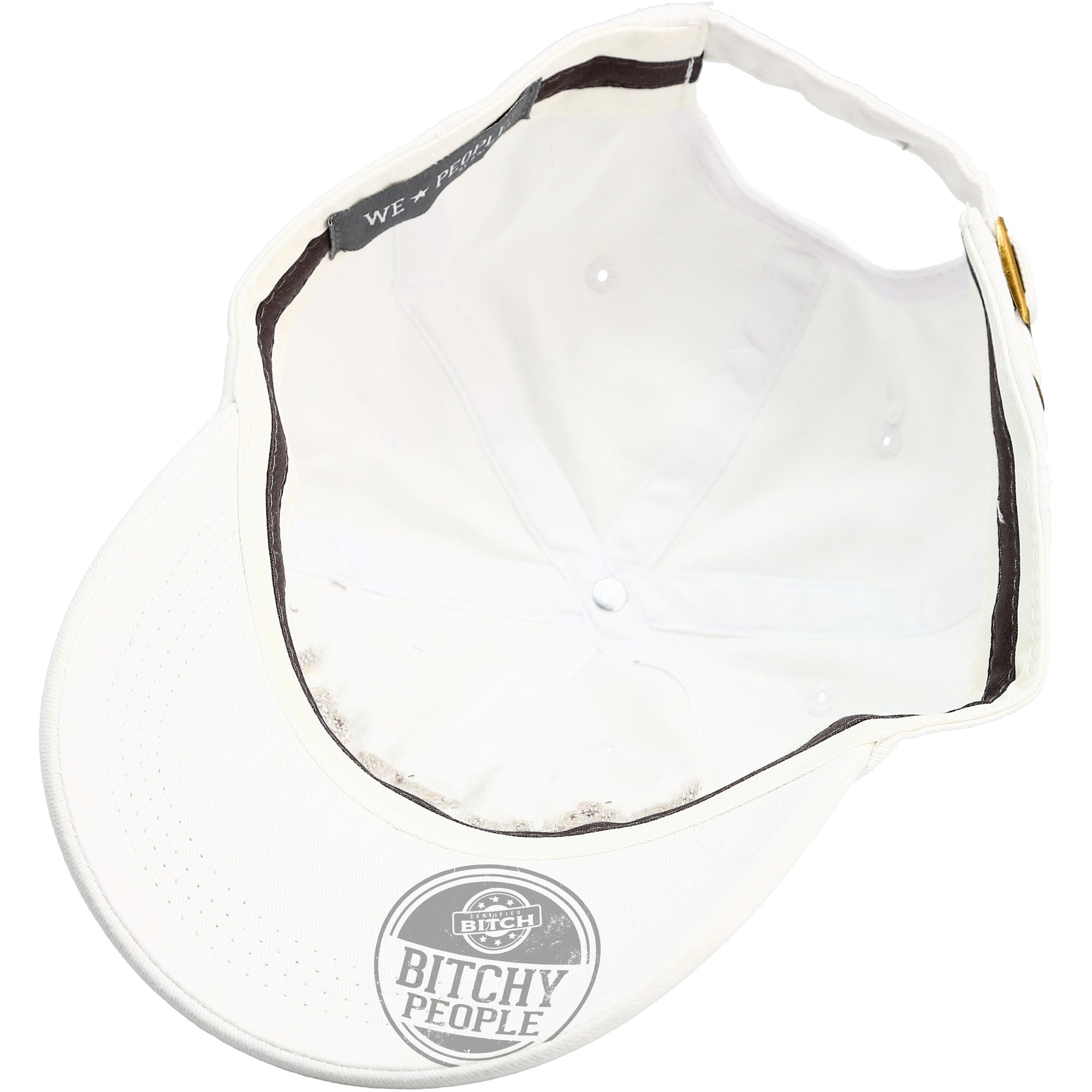 - IN-HOUSE DESIGN: The interior brim has a heat-stamped "Certified Bitch - Bitchy People" logo with star designs. The exterior front of the hat has embroidered & stitched patches, "Bitchy People," and sewn "WP" star on the side of the hat.
