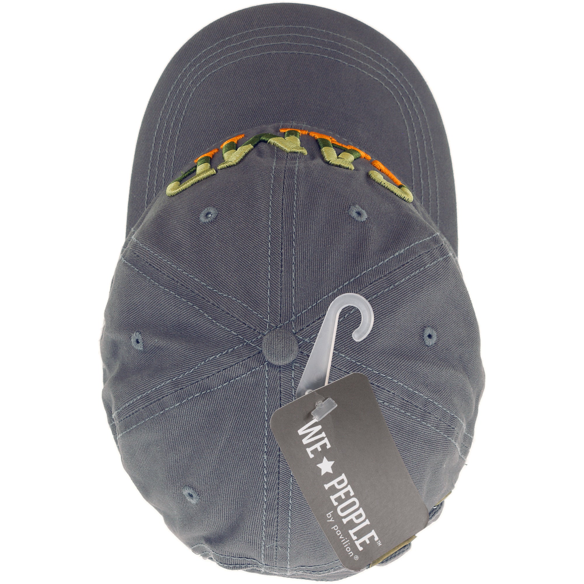 - IN-HOUSE DESIGN: This snap has an adjustable strap that can be tucked away into the backside of the hat. It features the "Camp" tri-color light green, dark green and orange sentiment embroidered sewn in sentiment. In addition, a "WP" star-shaped logo is sewn into the side of the hat. Finally, a "Be Your Own Kind Of People" sentiment is screen printed on the hat's bottom brim.