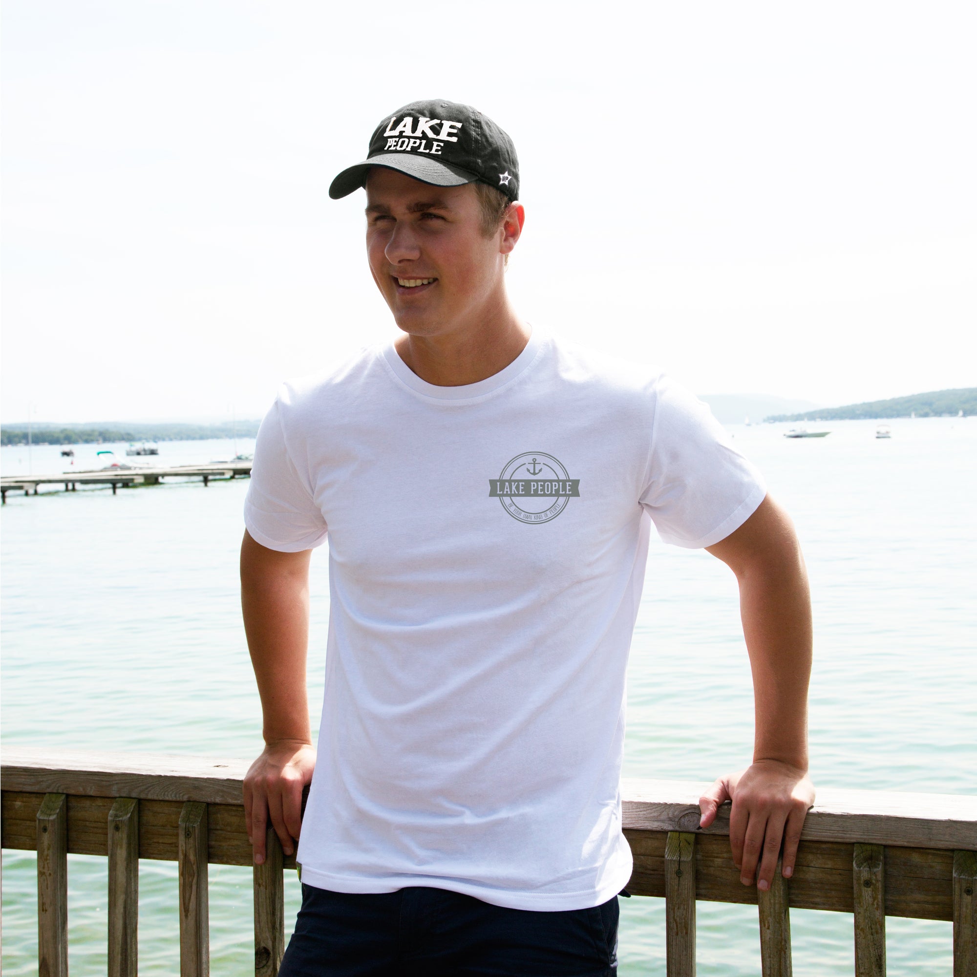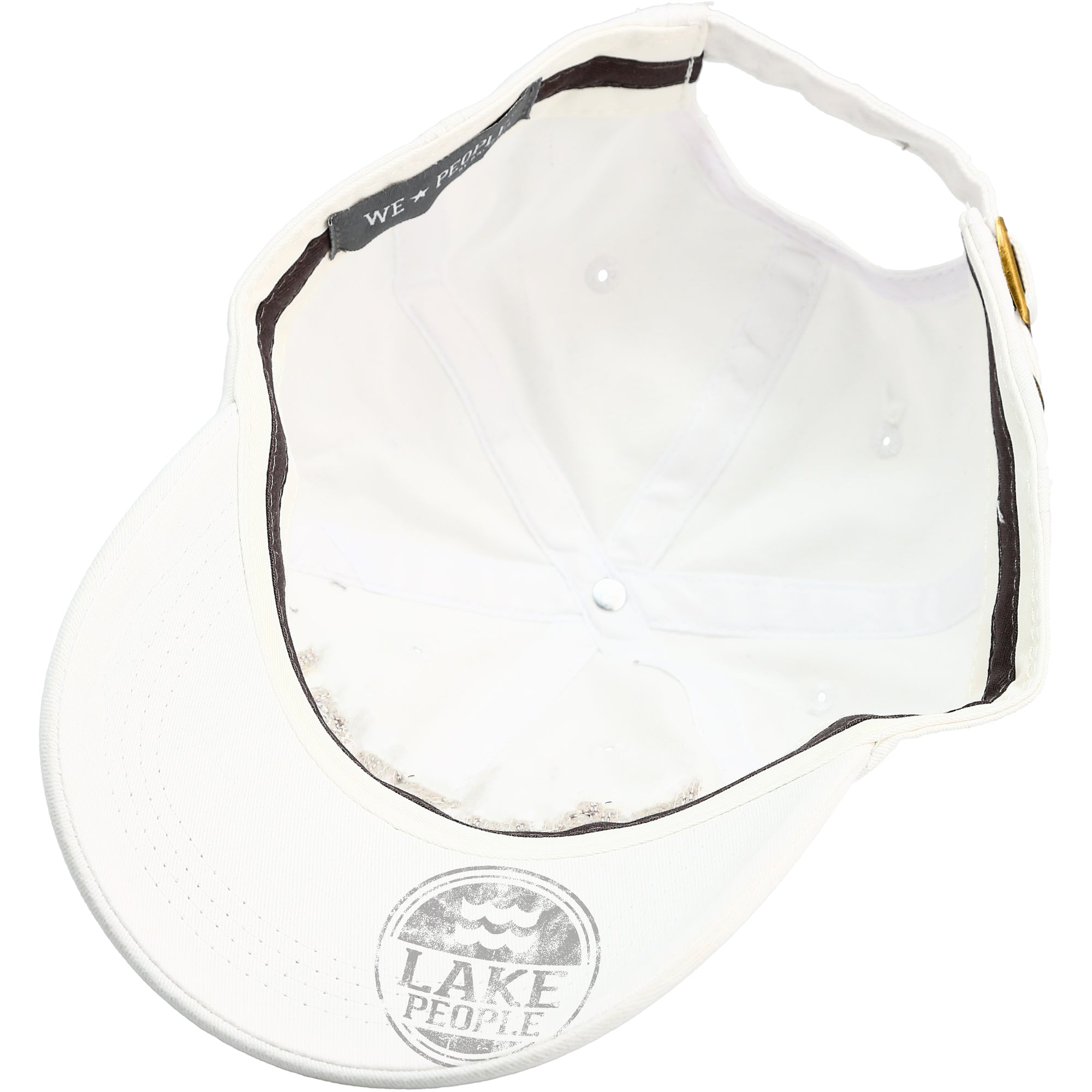 - IN-HOUSE DESIGN: "Lake People" text is embroidered and sewn-in with a frayed edge, as is the We People logo on the side of the hat. The brim features screen-printed text showing the "Lake People" logo.