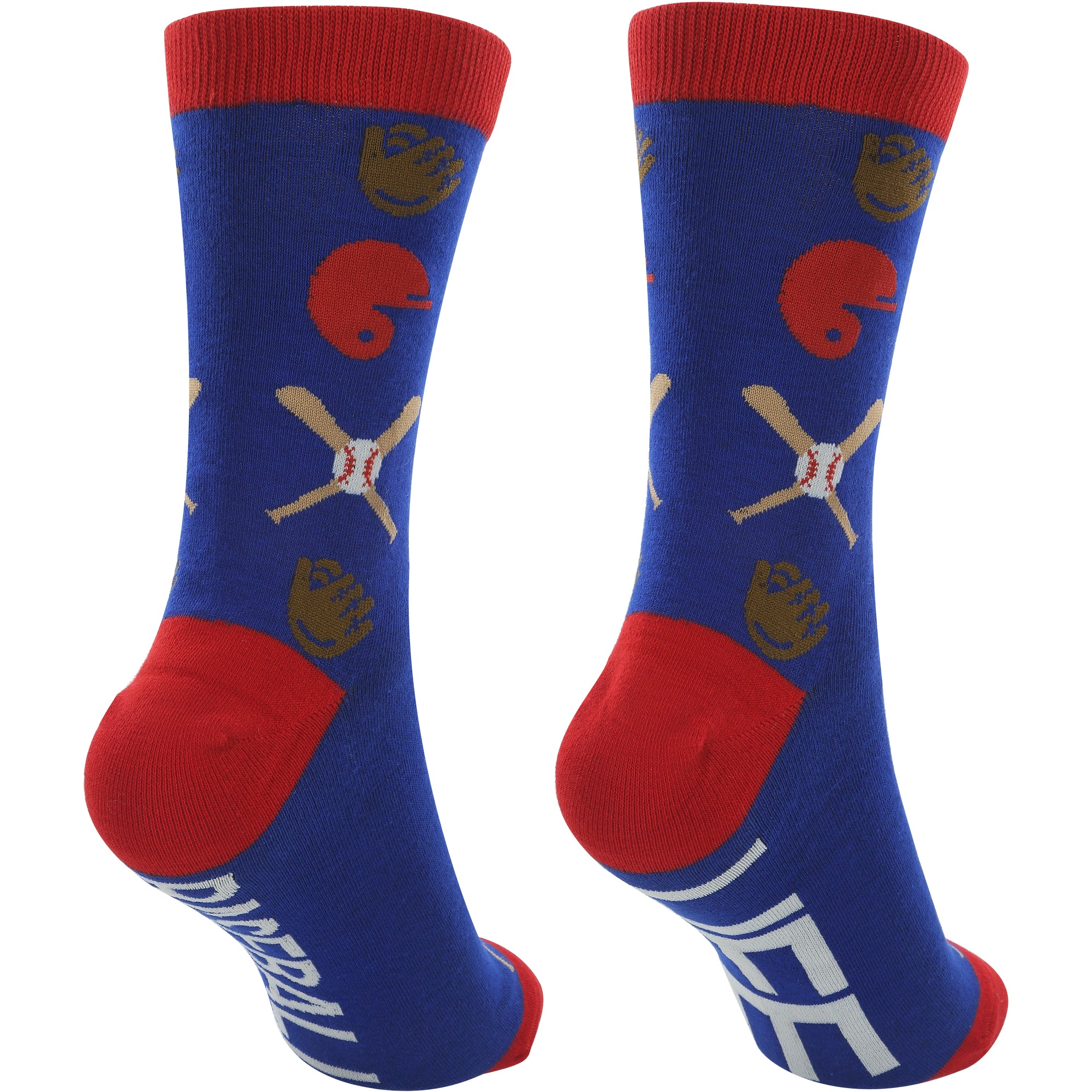 - IN-HOUSE DESIGN: "Baseball Life" text is sewn into the base of the socks while a baseball, baseball bat, glove, and helmet pattern covers the rest.