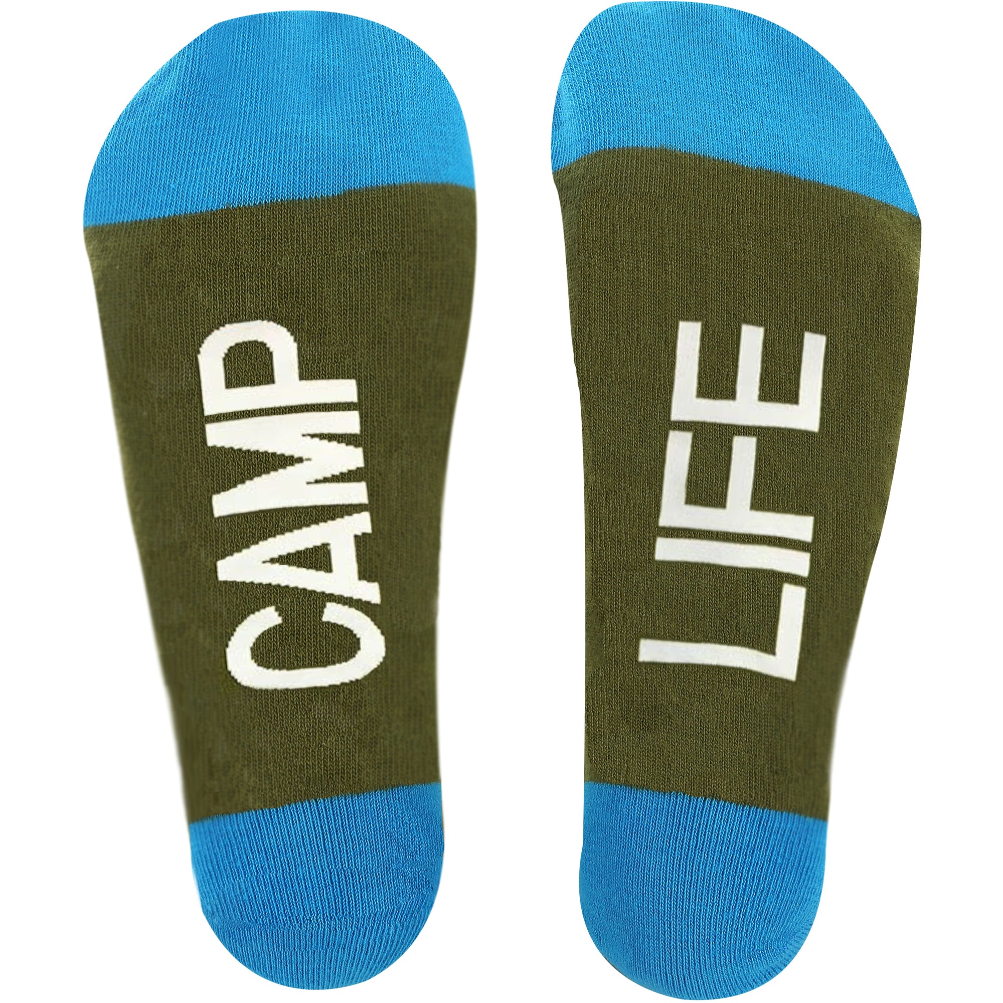 - IN-HOUSE DESIGN: "Camp Life" text is sewn into the base of the socks which feature a camper and tent pattern.