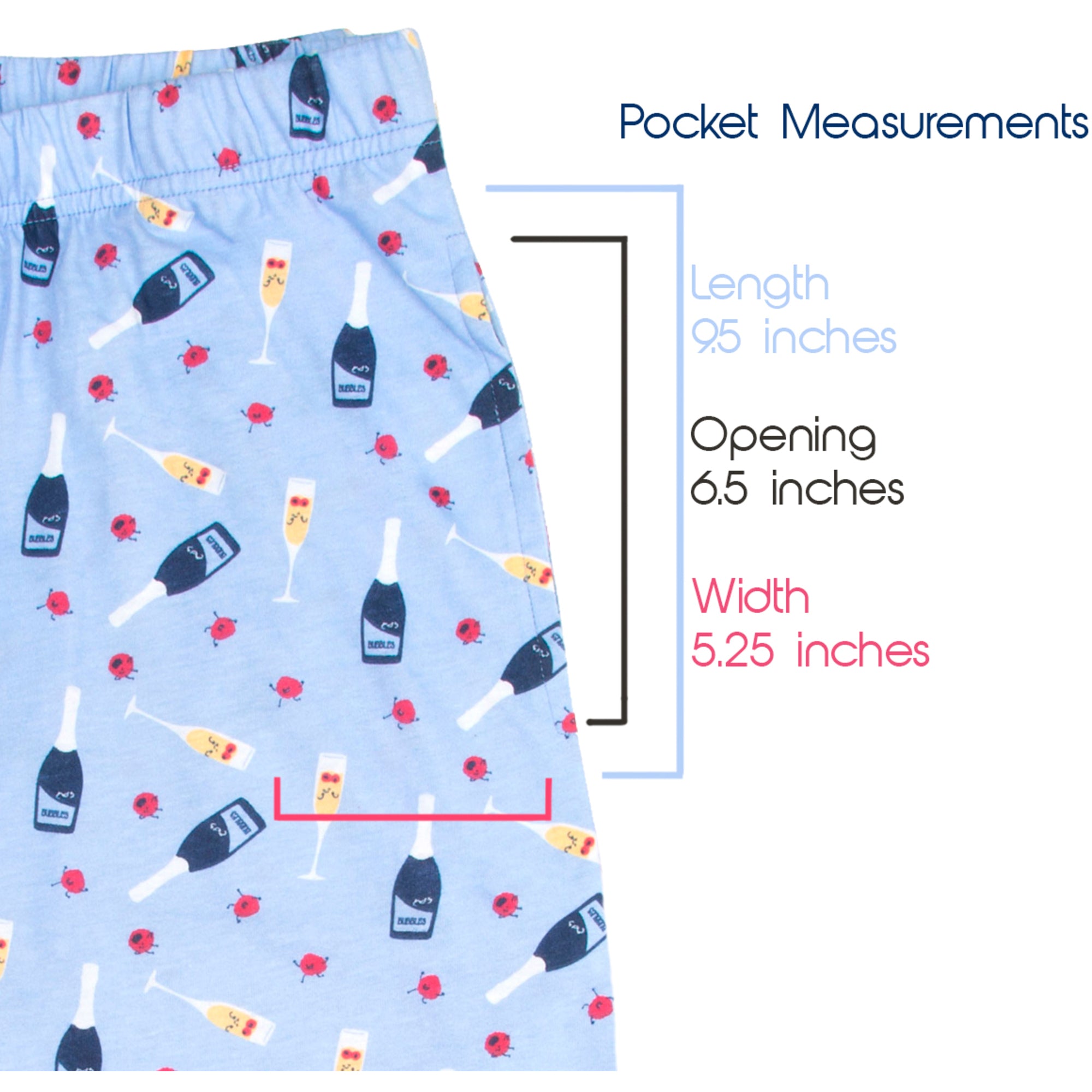 - IN-HOUSE DESIGN: Pattern features Prosecco bottles, glasses, and raspberries.