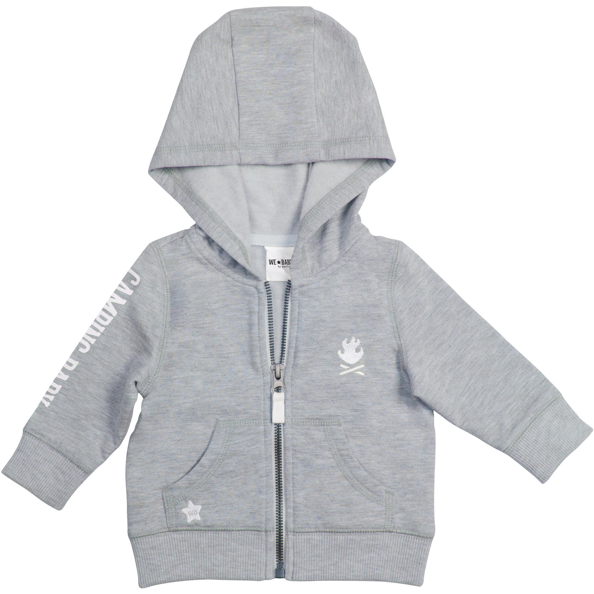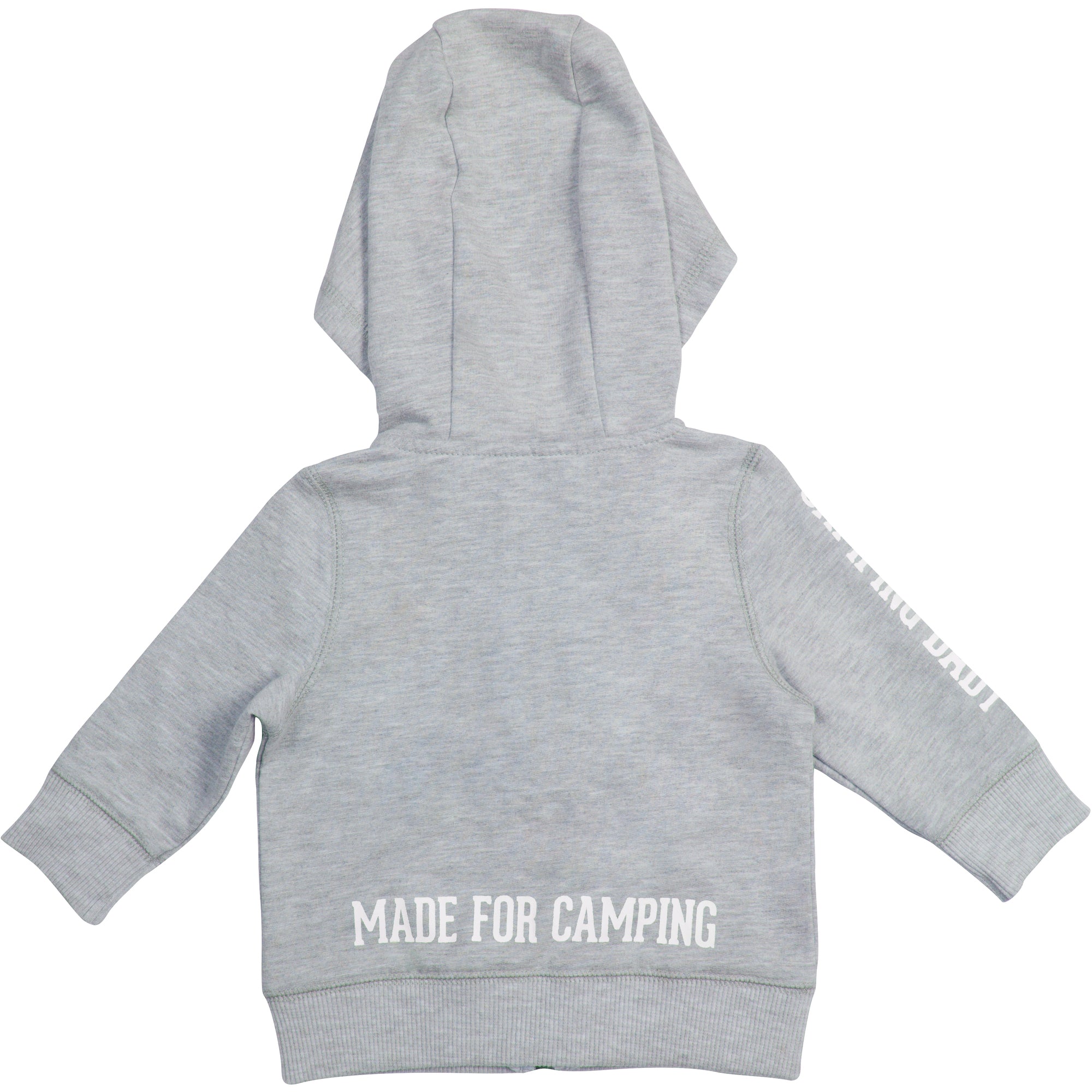- IN-HOUSE DESIGN: "Camping Baby" text is printed onto the sleeve, We Baby logo and campfire icon are embroidered onto the front of the hoodie, and "Made For Camping" text is printed onto the back of the hoodie.