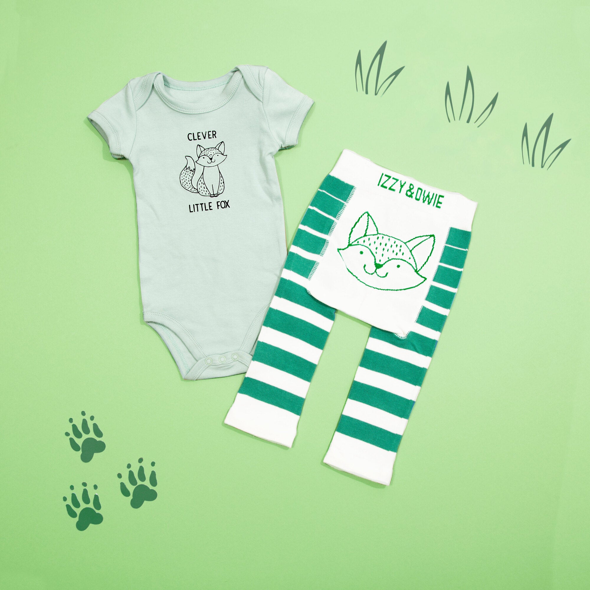 - IN-HOUSE DESIGN: "Izzy & Owie" text is sewn into the waistband, fox image is sewn into the rear, and the stripe pattern of the main material covers the rest of the leggings.
