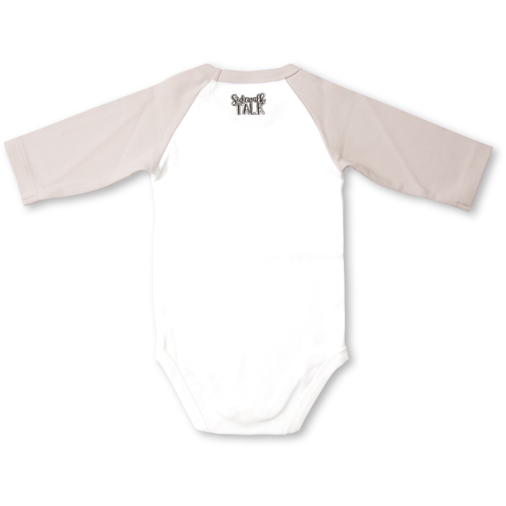 • PREMIUM QUALITY: Bodysuit with 3/4 sleeves for sizes 6-12 months, packaged in a plastic polybag with wooden hanger, is made from 100% cotton and features snap closures.