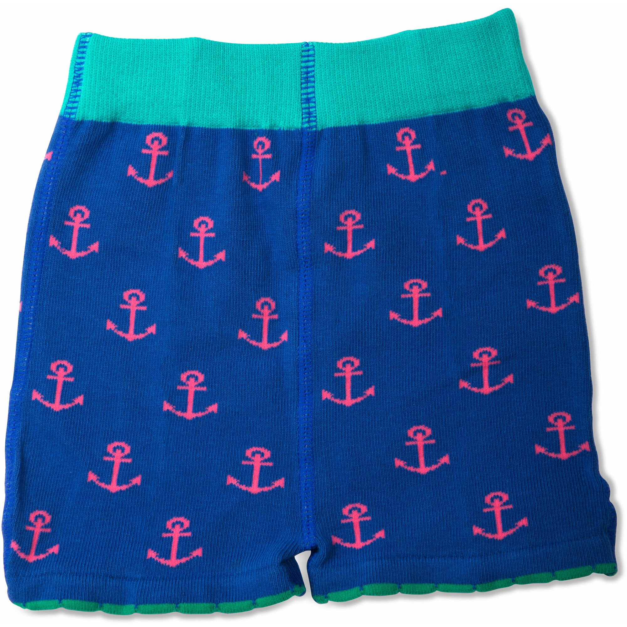 - IN-HOUSE DESIGN: "Izzy & Owie" text is sewn into the waistband, whale image is sewn into the rear pocket, and the anchor pattern of the main material covers the rest of the shorts.