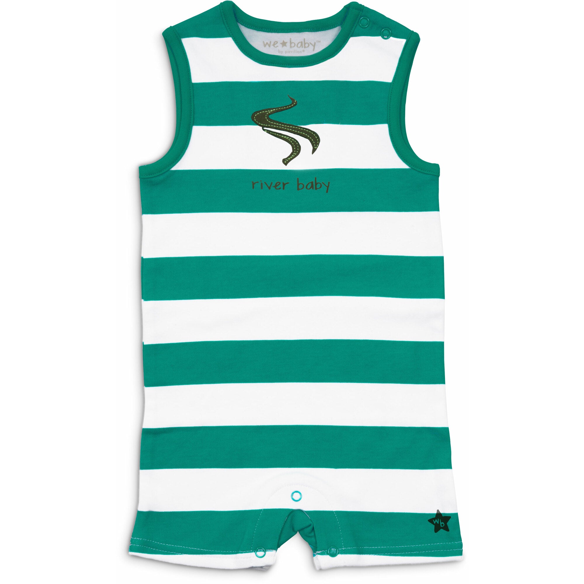 - IN-HOUSE DESIGN: "River Baby" text is screen printed, as is the We Baby logo on the bottom of the romper.