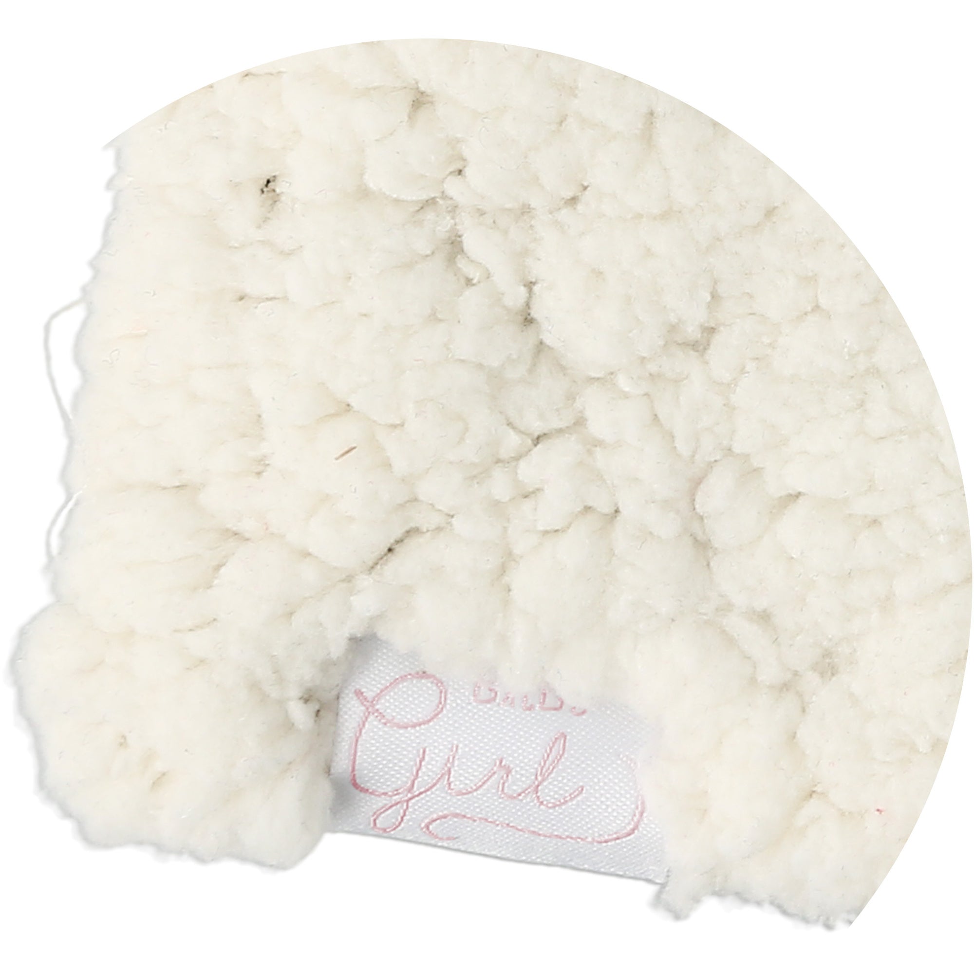 - PREMIUM QUALITY: This one-size-fits-most 6-12 month hat measures 18 inches in circumference or 9" long x 6" tall while laying flat. This fluffy, cozy, warm winter hat has a 100% polyester fleece lining and a white sherpa exterior. The 2.25" tall x 2" wide ears stick off the sides of the top of the hat.