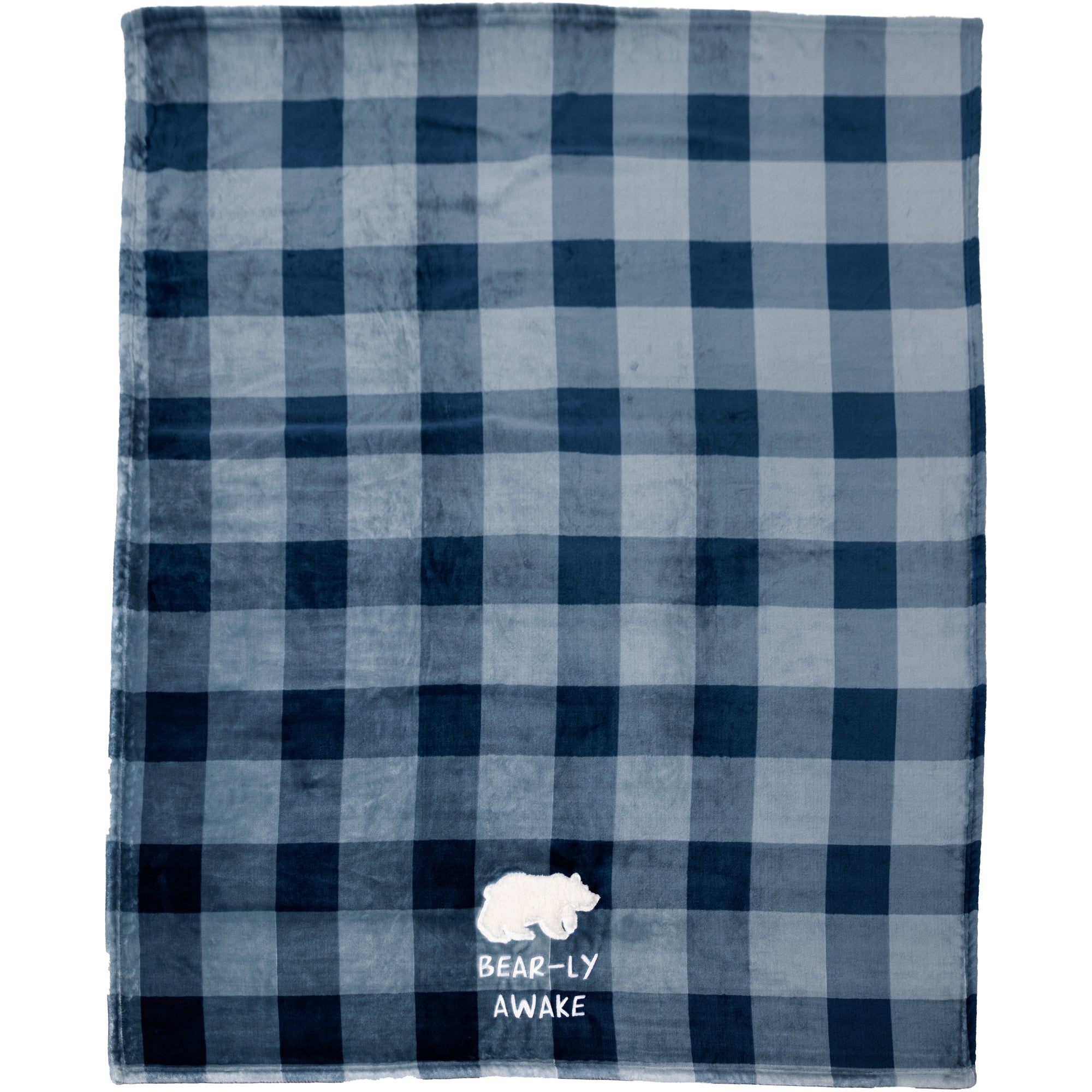 - IN-HOUSE DESIGN: At the center bottom of the blanket, there is an embroidered white "Bear-ly Awake" sentiment and a raised jacquard fluffy white grisly or black bear silhouette.