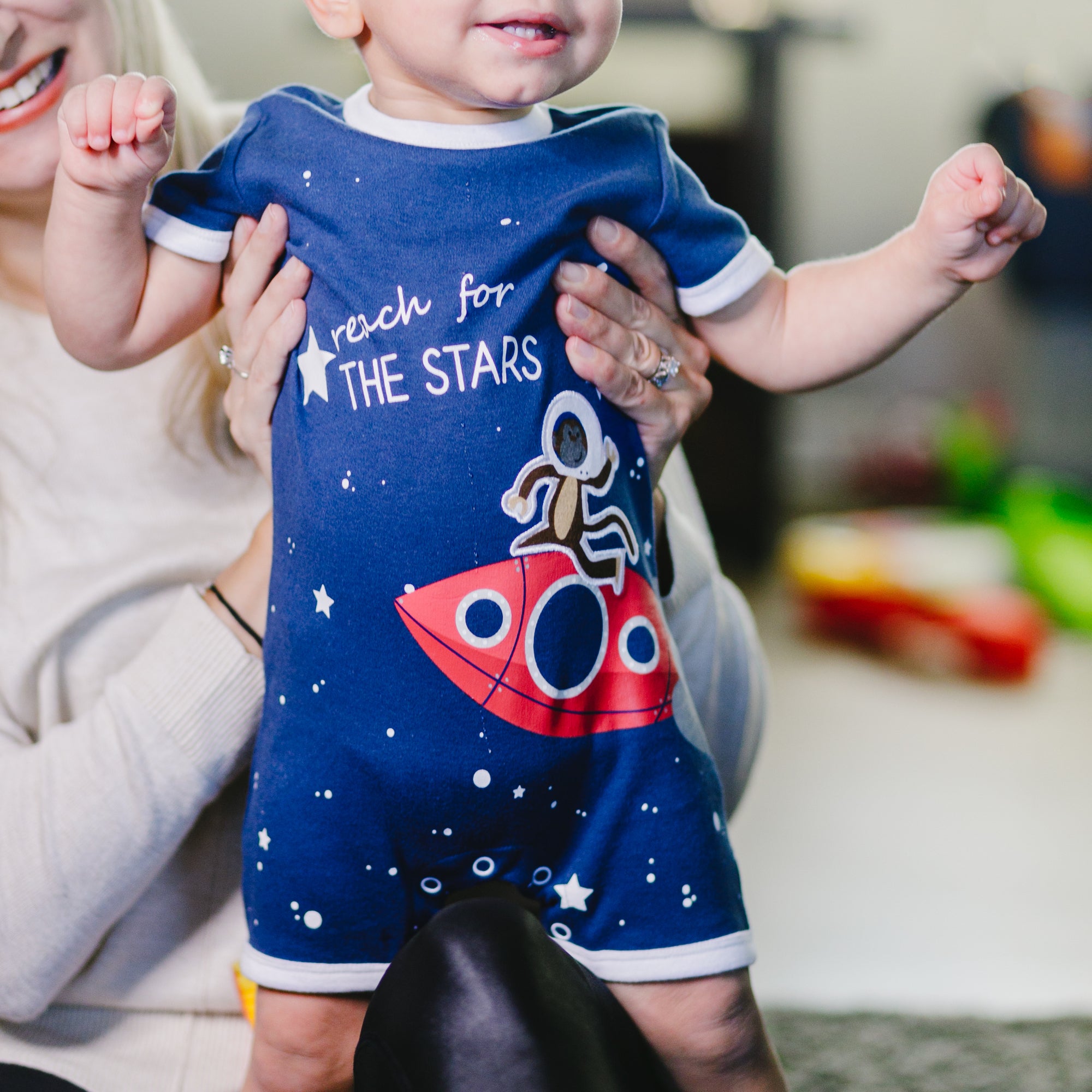 • PREMIUM QUALITY: Baby romper fits ages 6-12 months and is made from 100% high-quality cotton. Easy to put on by using snaps at the back of the neck and on the bottom crotch area. Includes white plastic hanger with a logo sticker and hangtag on the romper. Comes in a polybag.