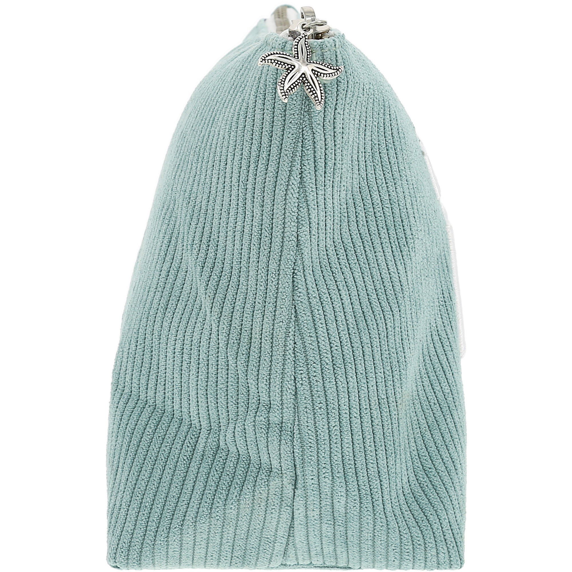 • PREMIUM QUALITY: This aqua corduroy zippered pouch offers a soft exterior with sturdy structure, lined with printed cotton fabric featuring seashell motifs. The embroidered “Take Me to the Beach” sentiment adds a playful coastal touch, while the silver zipper with starfish-shaped pull ensures durability and style. Ideal for organizing travel items, makeup, or sunscreen essentials.