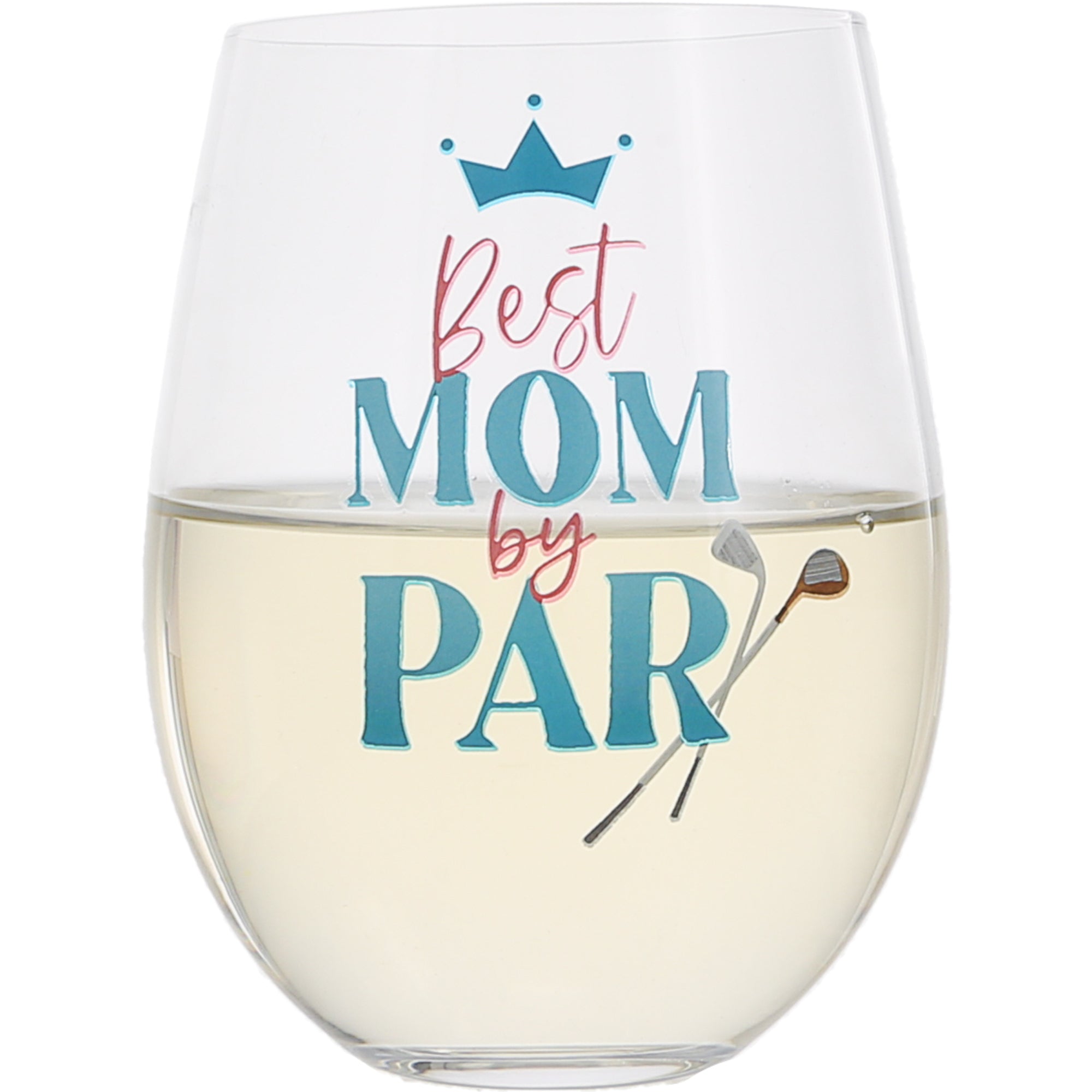 - IN-HOUSE DESIGN: The "Best Mom By Par" crown and double golf club design is printed onto the front center of the wine glass. It is wonderful for a daughter or son to gift to their mommy, mama, or mom. Whether biological, adoptive, in-laws, or step, all moms hold a special place in our hearts and lives.