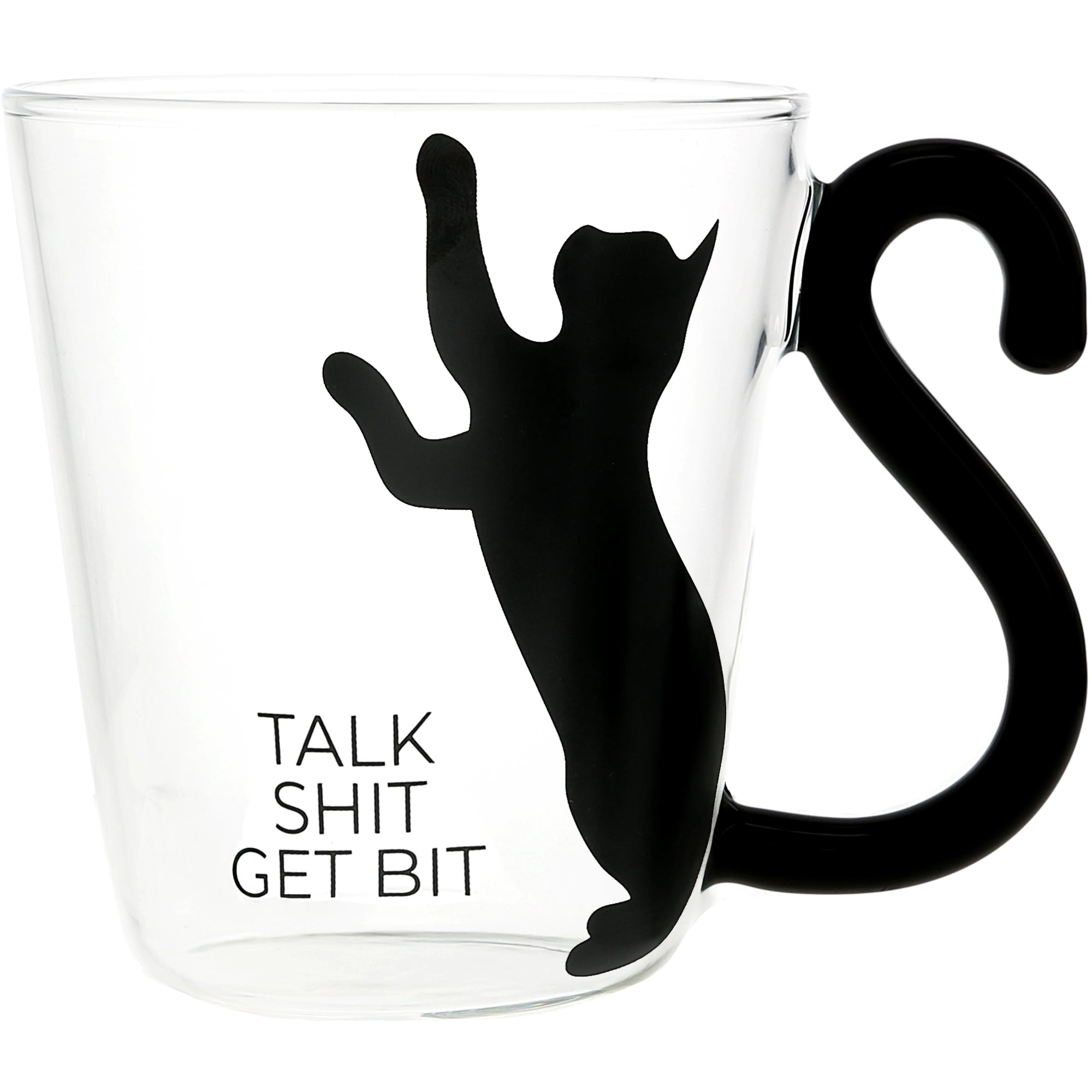 - PREMIUM QUALITY: This 13.5 oz glass cup features a clear glass body with a bold black cat decal mid-pounce, paired with a tail-shaped handle that adds playful design and easy grip. Dishwasher safe for convenience but best preserved with hand washing. Comes securely packaged in a white die-cut box—perfect for gifting to anyone with a mischievous sense of humor.