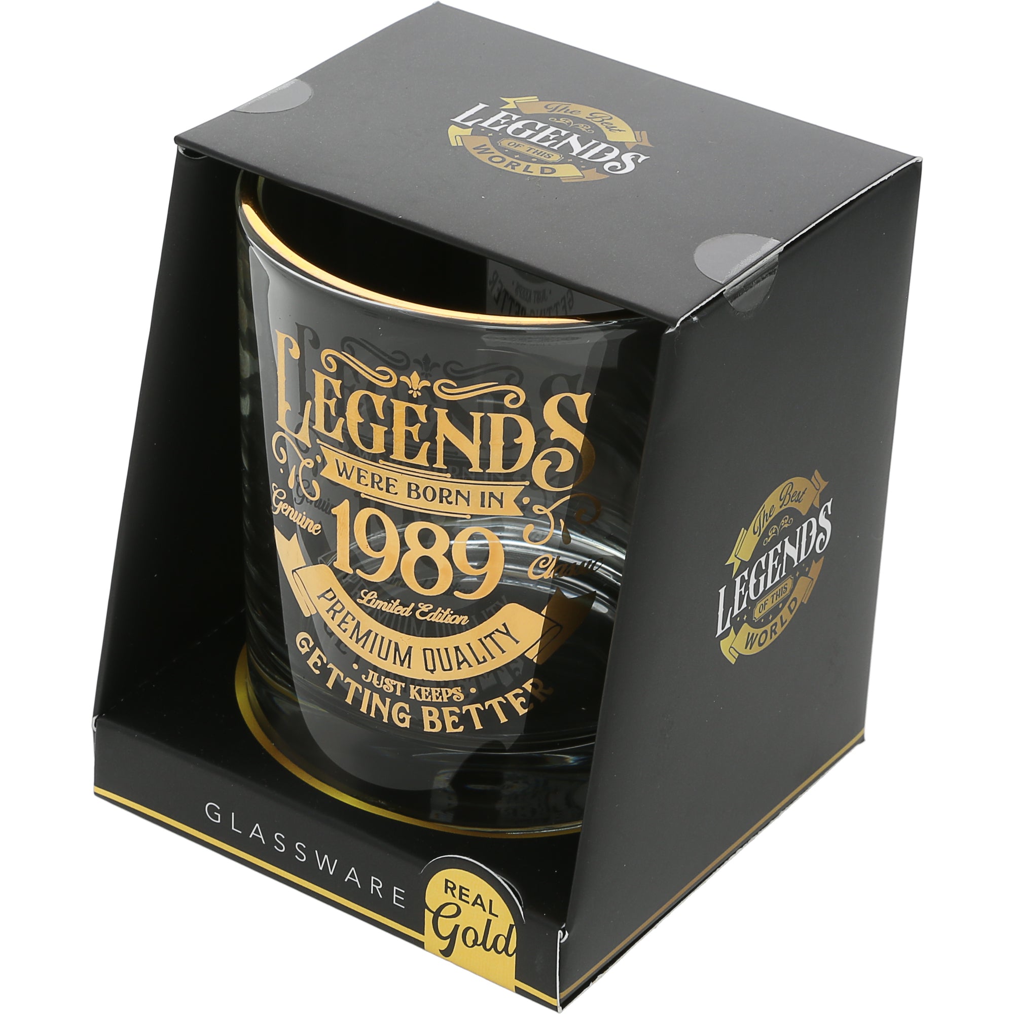 - IN-HOUSE DESIGN: The gold electroplated rim is accompanied by the gold "Legends Were Born In 1989, Genuine Classic, Limited Edition, Premium Quality, Just Keeps Getting Better" sentiment decal on the front side of the whiskey along with banners and stars.