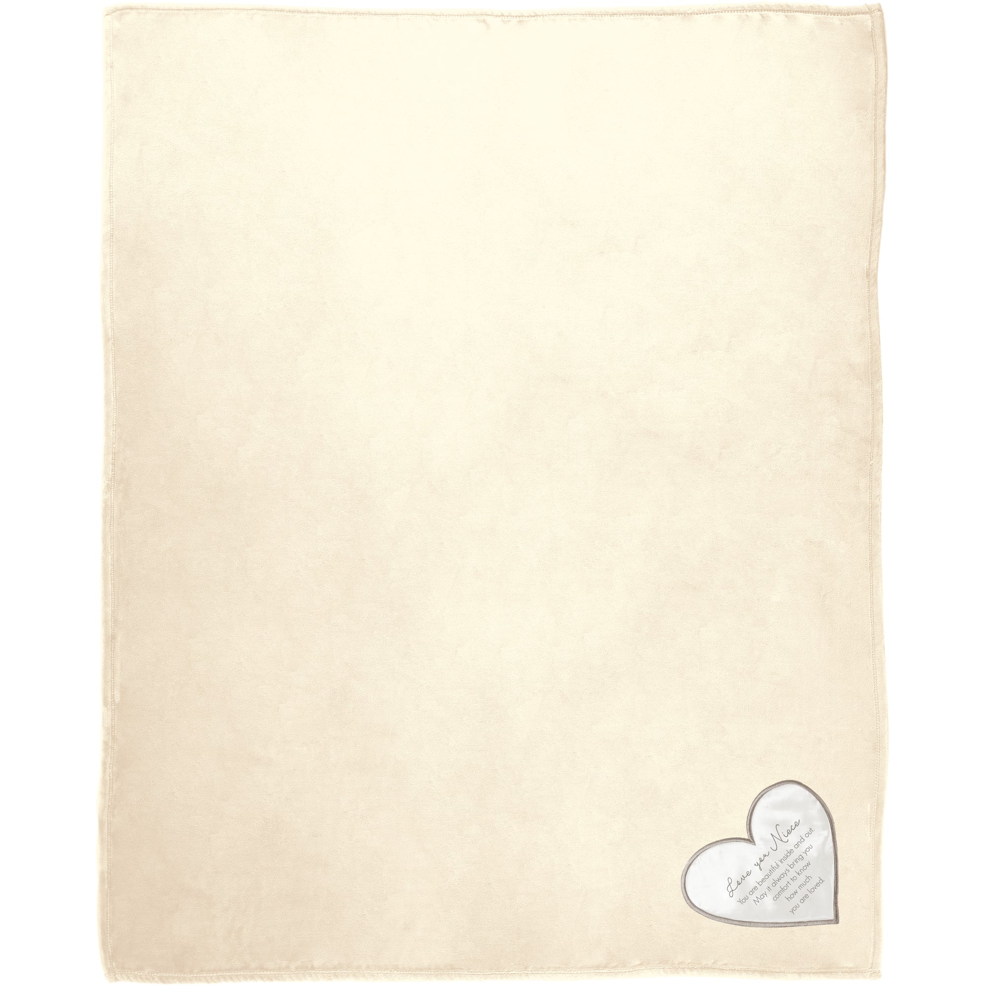- IN-HOUSE DESIGN: Beige "Love You Niece - You Are Beautiful Inside And Out, May It Always Bring You Comfort To Know How Much You Are Loved" printed uplifting and comforting sentiment is featured on the bottom right corner of the front of the silvery/gray home decor blanket on a white heart embroidered edge patch.