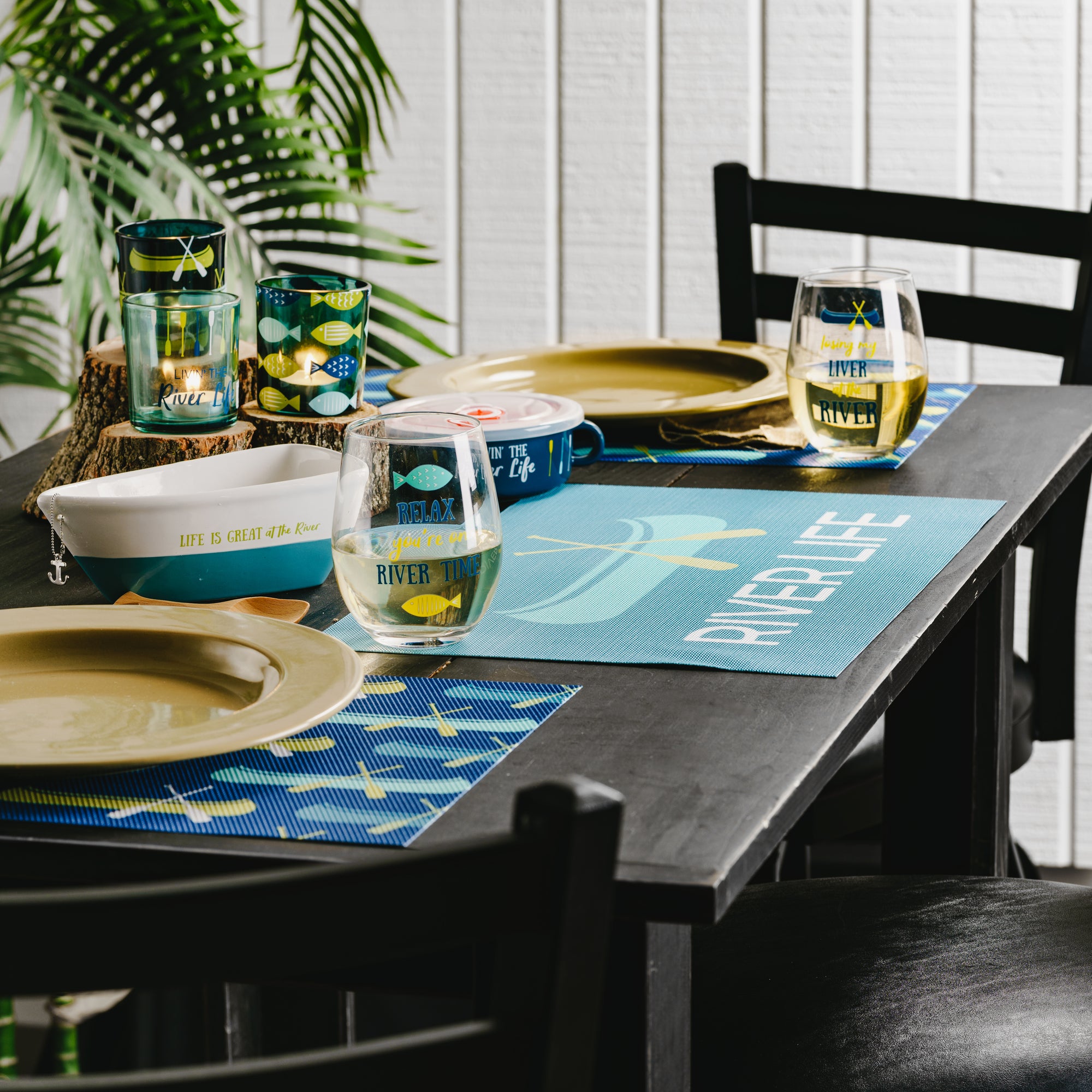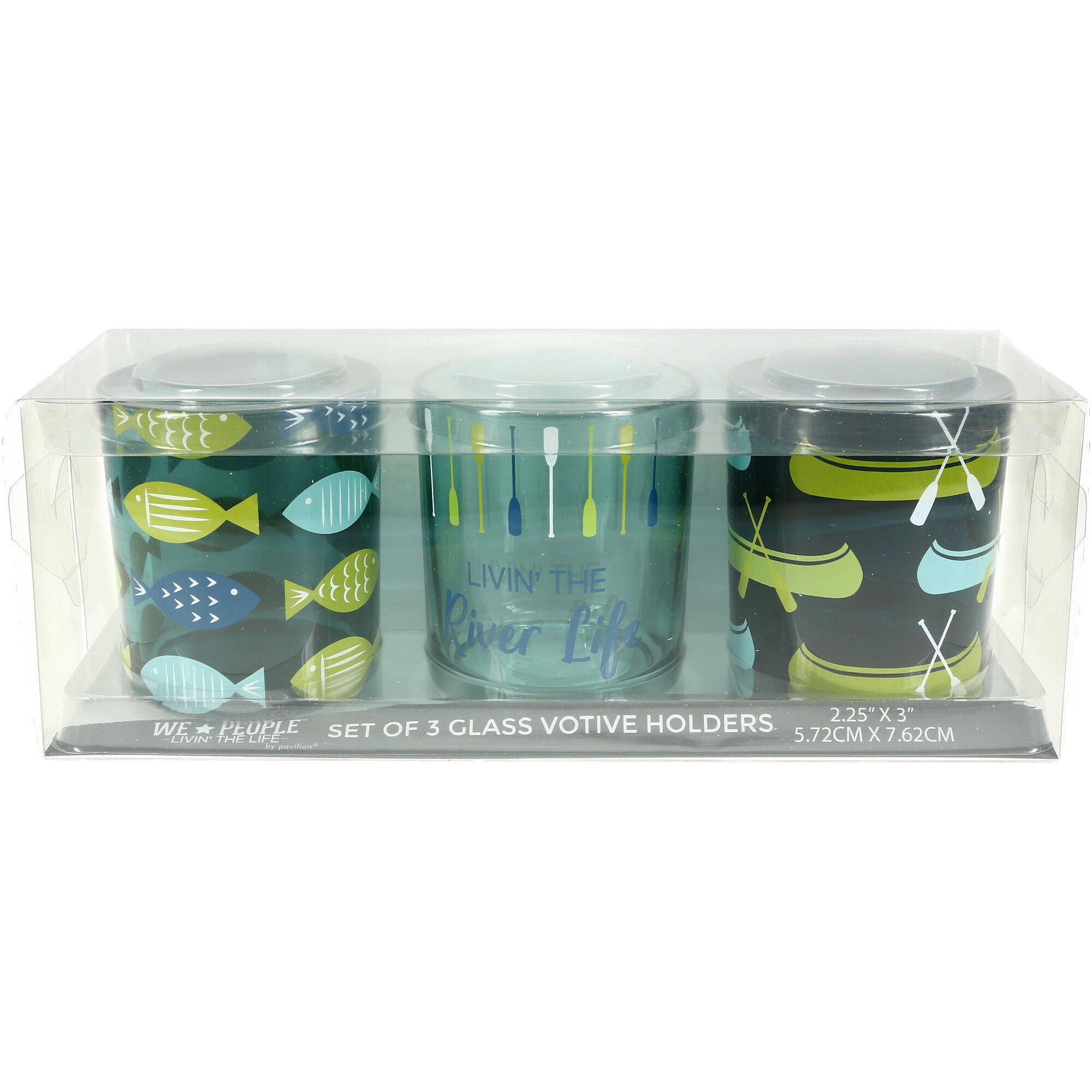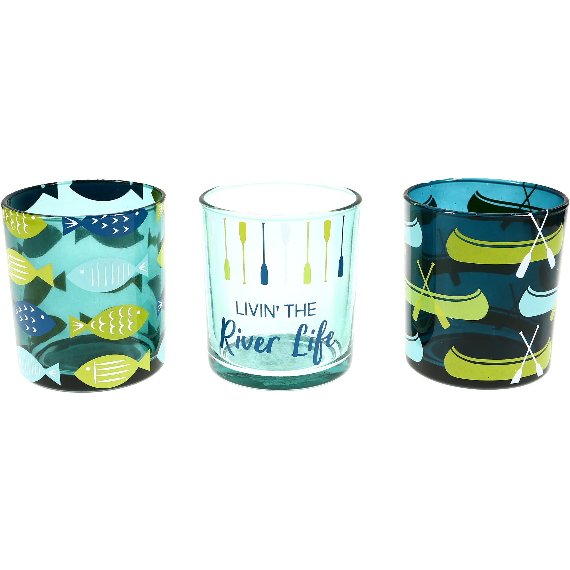 • IN-HOUSE DESIGN: "Livin' The River Life" text and accompanying fish and boat icon decals are applied to the outside of the individual votive holders.