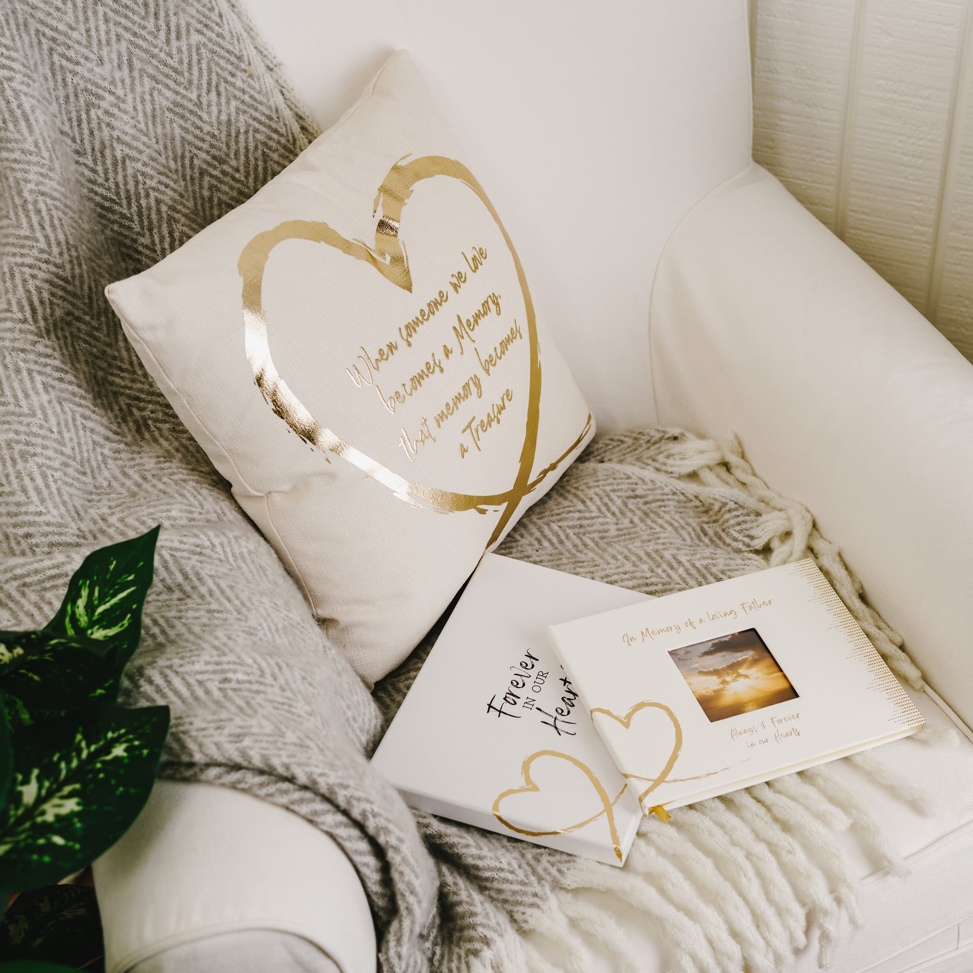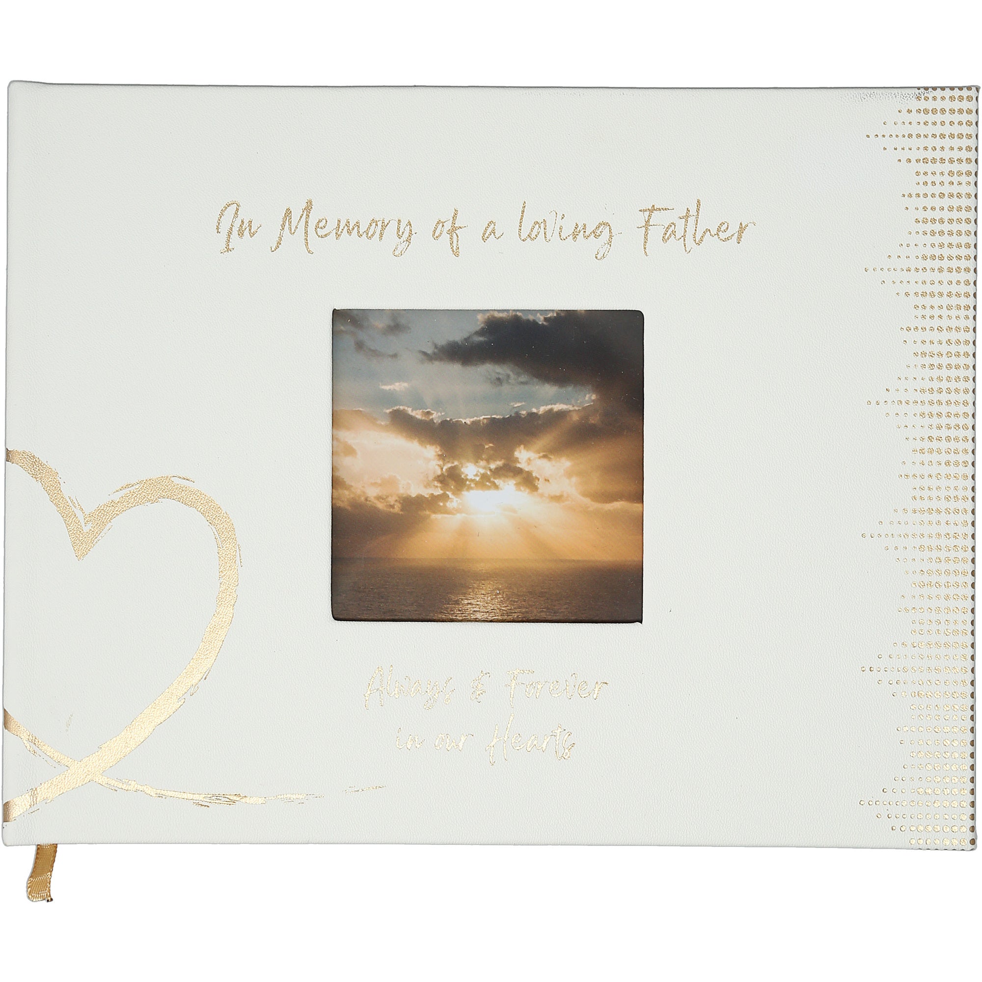 - IN-HOUSE DESIGN: "In Memory Of A Loving Father; Always And Forever In Our Hearts" text is heat-stamped onto the front of the book.