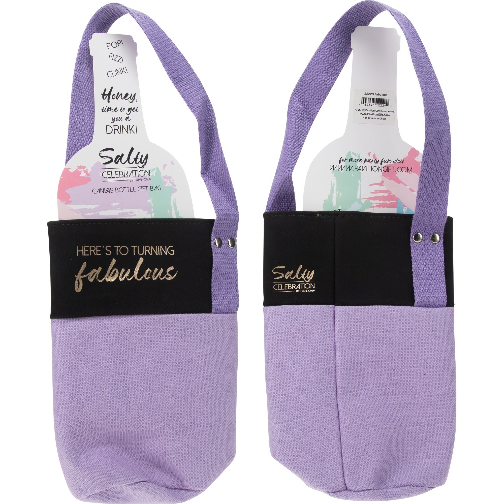 - IN-HOUSE DESIGN: "Here's To Turning Fabulous" text is laser-printed onto the front of the bottle bag.