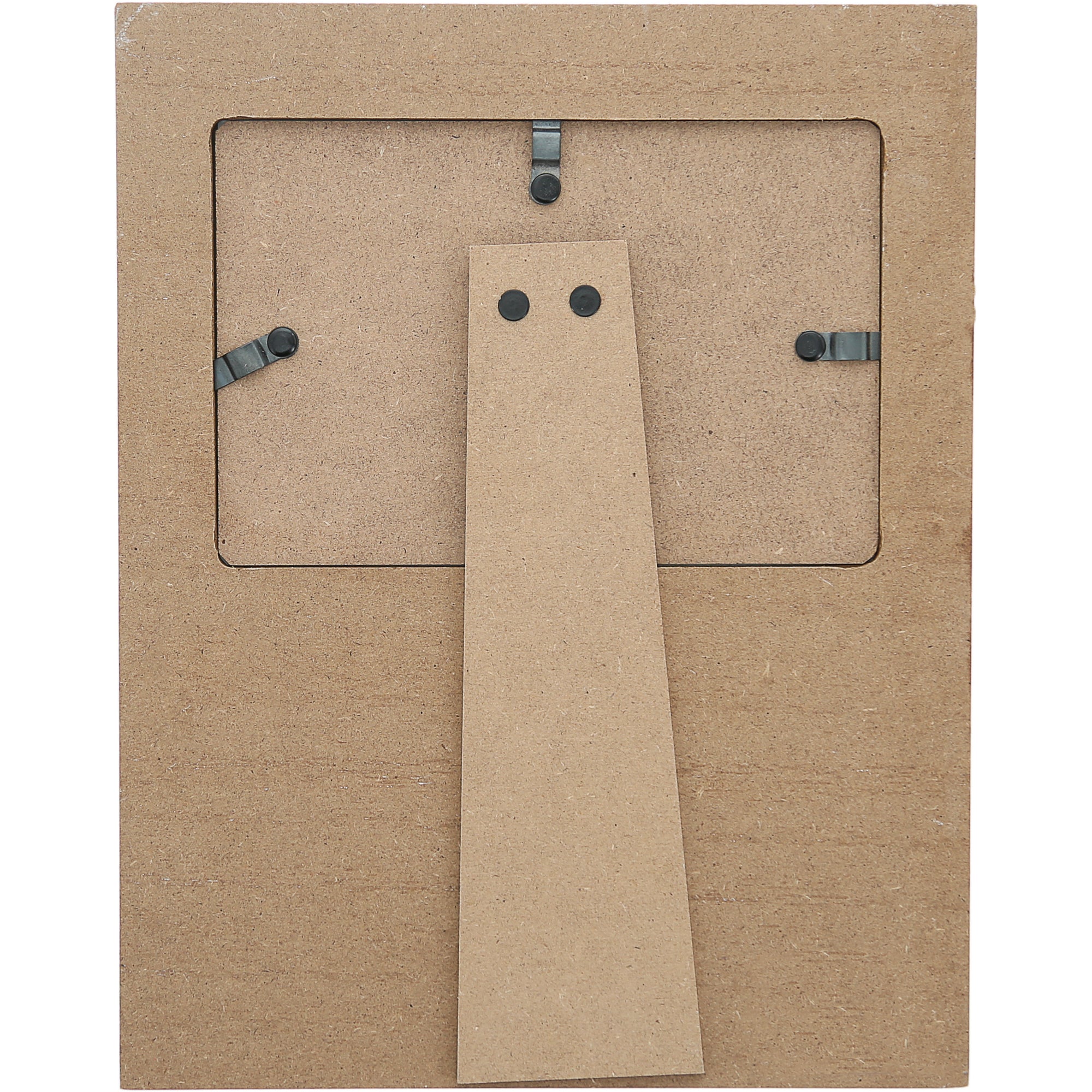 • PREMIUM QUALITY: 7.75" x 10" vertical MDF picture frame has a rounded edge glass opening to hold a 4" x 6" horizontal photo. The back features three metal turn knobs to remove the backing and replace the stock photo. The center of the removable part has an easel back stand joined by two metal tabs.