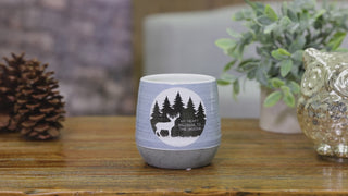 • IN-HOUSE DESIGN: The new & innovative candle offers a unique hidden special message within the wax as time progresses. The wax reveal begins to show after 10 minutes and is fully visible after 50 minutes of burn time. Overall burn time is 27-30 hours. The front side of the vessel features a blue diamond pattern and buck deer in a pine tree line silhouette design accompanied by a "My Heart Belongs To The Woods" sentiment. The wax has a black "All Good Things Are Wild & Free" sentiment with a moon, star, and woodland silhouette design.