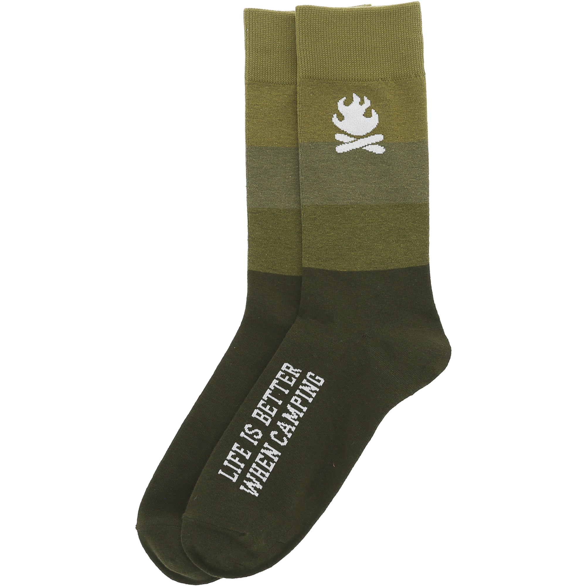 - IN-HOUSE DESIGN: Featuring a leaf emblem and the phrase "Life Is Better When Camping," these socks capture the essence of outdoor adventure. The earthy green tones and nature-inspired design make these socks ideal for camping trips or outdoor activities. The design is printed on both the top and bottom of the socks for added style.