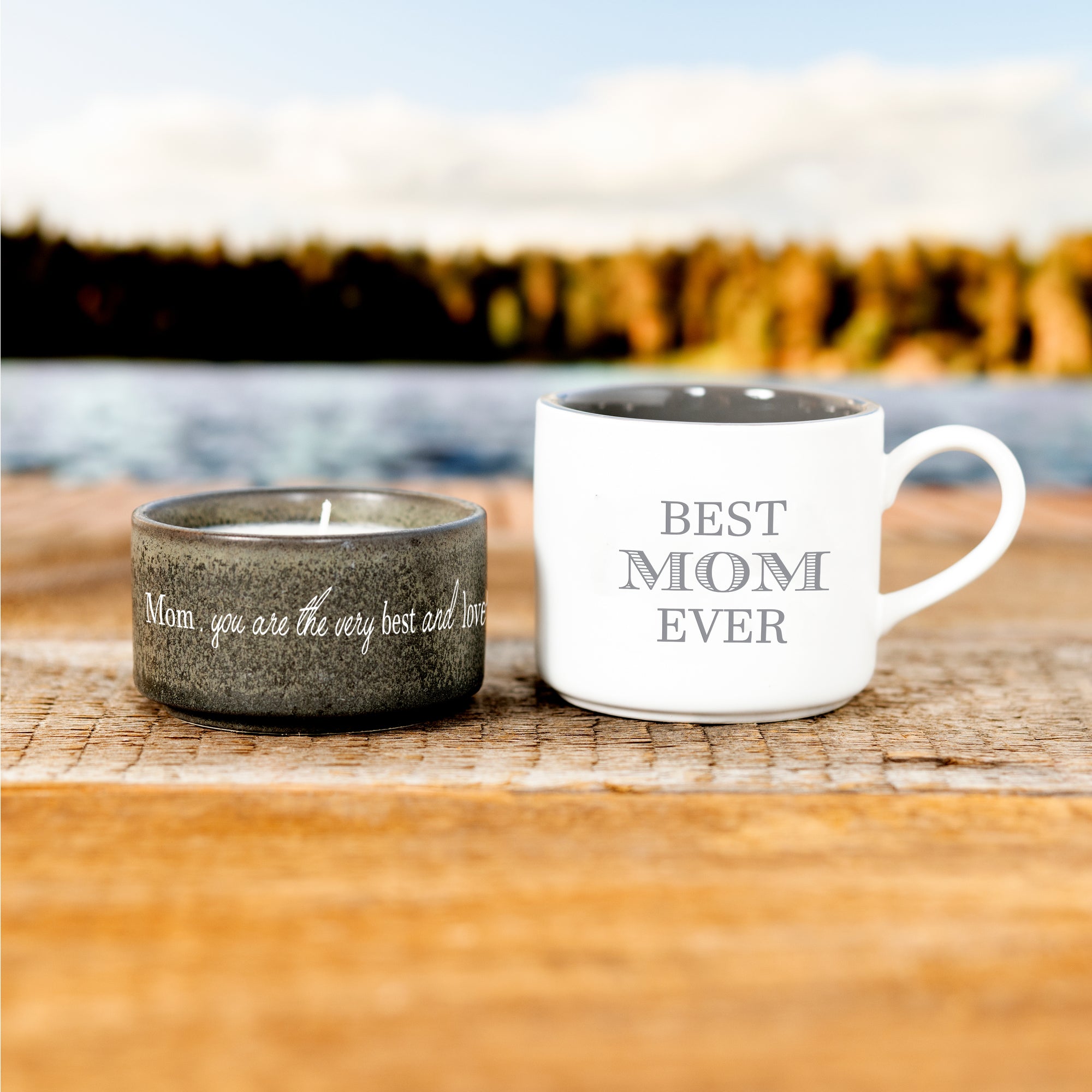 - IN-HOUSE DESIGN: Wrap-around white sentiment on the candle, "Mom, You Are The Very Best And Loved The Most." Gray mug sentiment "Best Mom Ever" on the front side of the mug only. Faces towards you in the right hand or outward in the left hand.