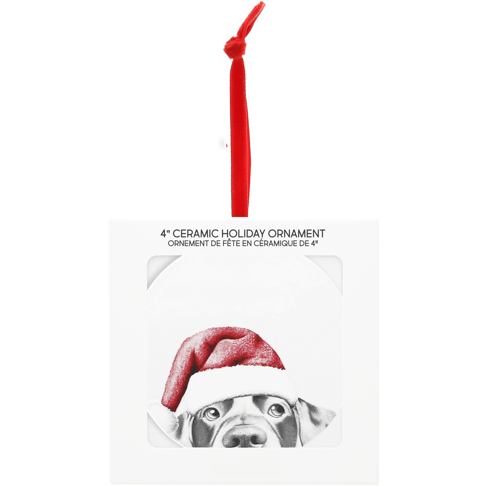 - PREMIUM QUALITY: This 3.5" x 4" ceramic ornament features a mischievous gray tabby cat cozily tucked into a red Santa hat. It’s crafted with glossy ceramic tile and printed in vivid 3D detail front and back, complete with a red velvet hanging ribbon for a high-end holiday look.