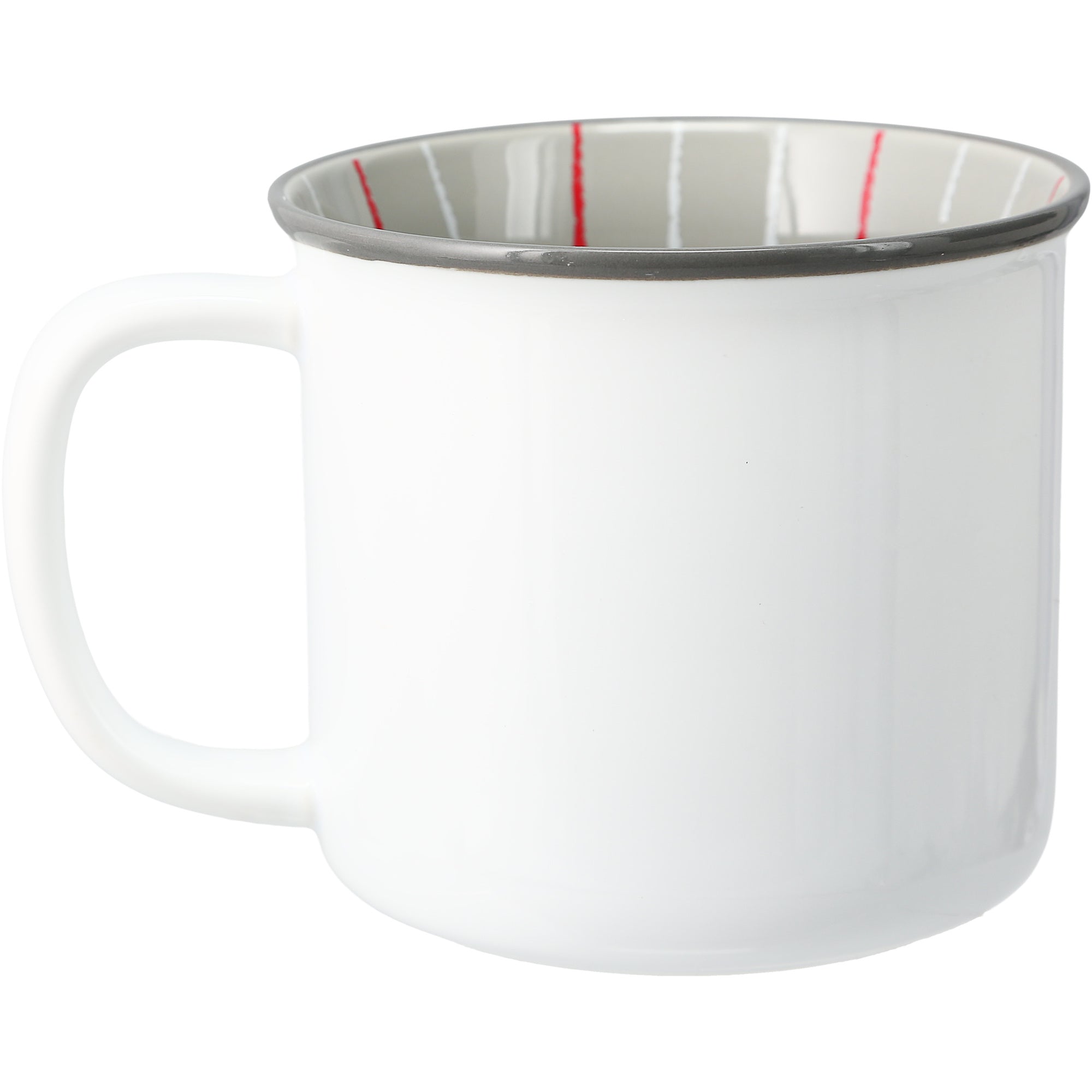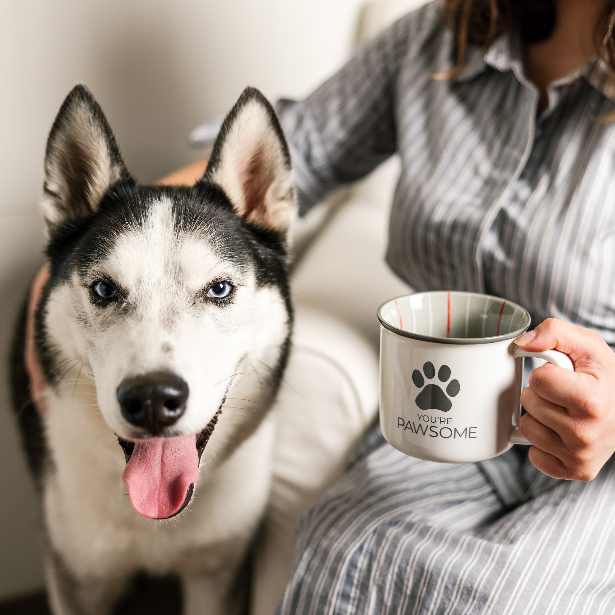 - IN-HOUSE DESIGN: The mug's front features a paw print silhouette. Right below is a sentiment: "You're Pawesome." The lip of the white cup is dark gray, whereas the interior is gray and has a crayon-looking white & red striped pattern interior wrap-around finish.