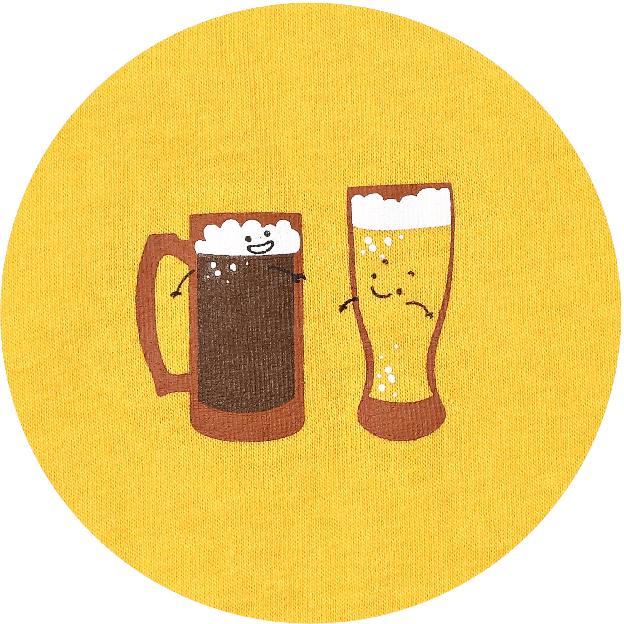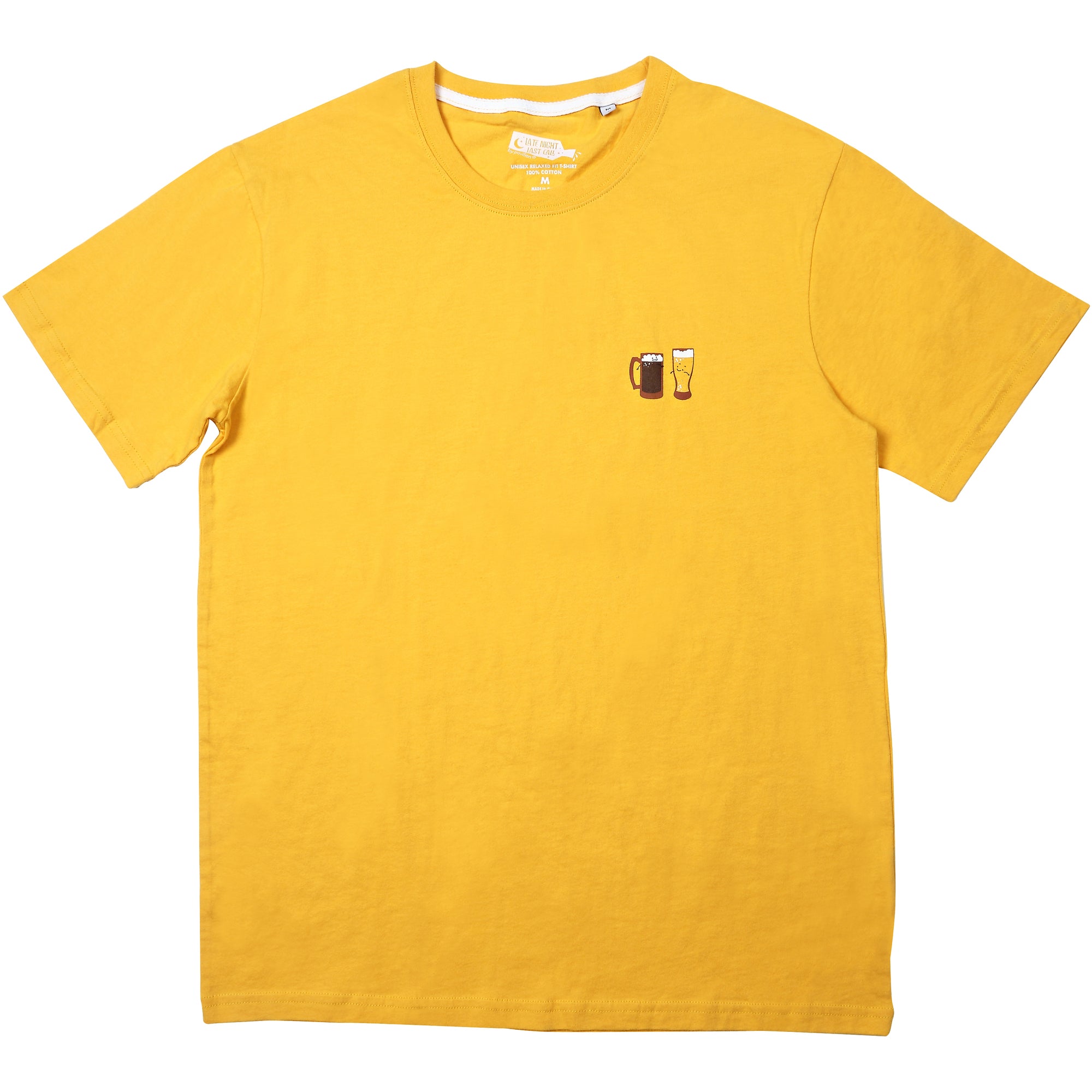 - IN-HOUSE DESIGN: "Beer Makes Me Hoppy" text is printed on the back of the t-shirt, alongside beer icons, which are printed on the front.