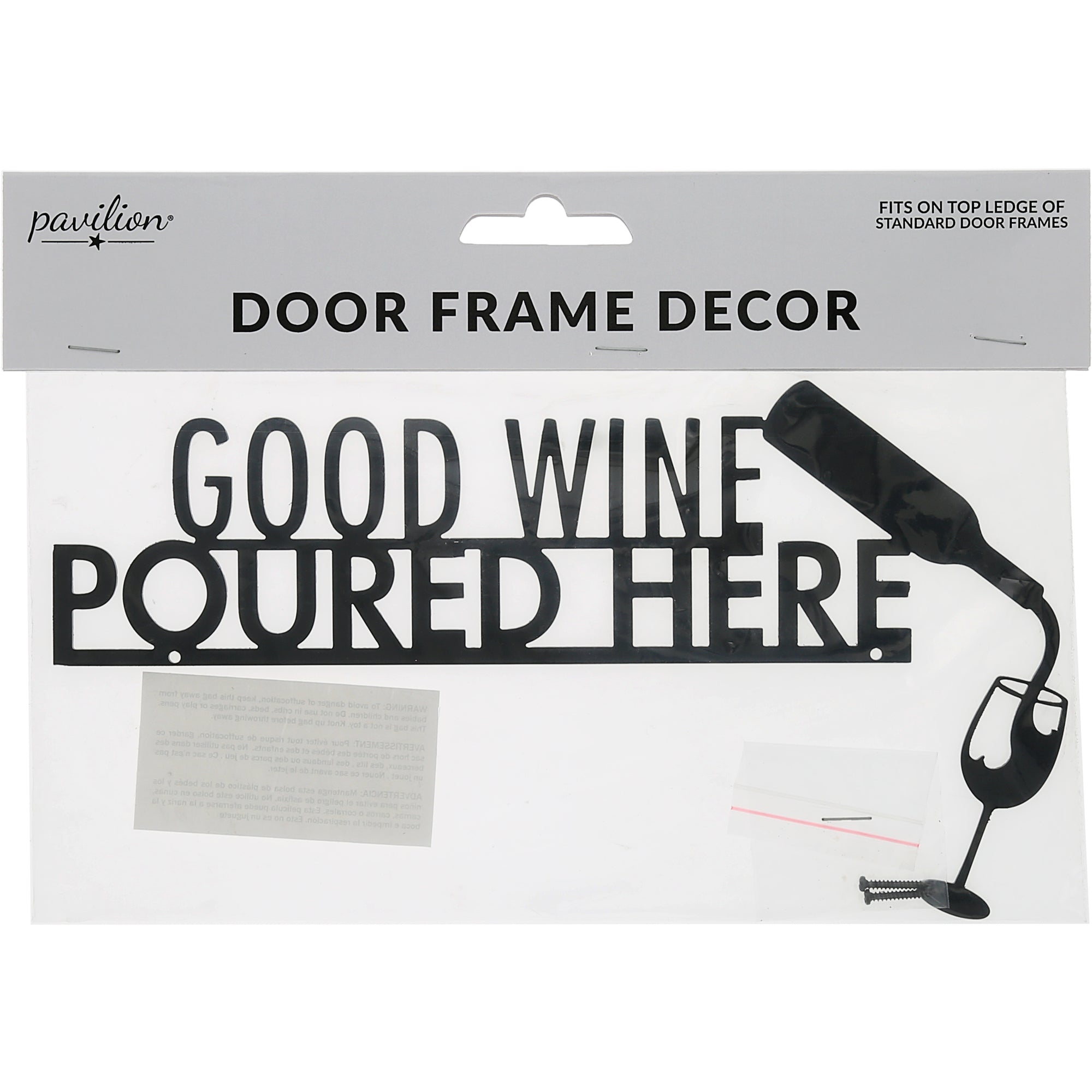 - IN-HOUSE DESIGN: The "Good Wine Poured Here" sentiment is accompanied by a silhouette bottle of wine that is being poured into a stemmed wine glass.